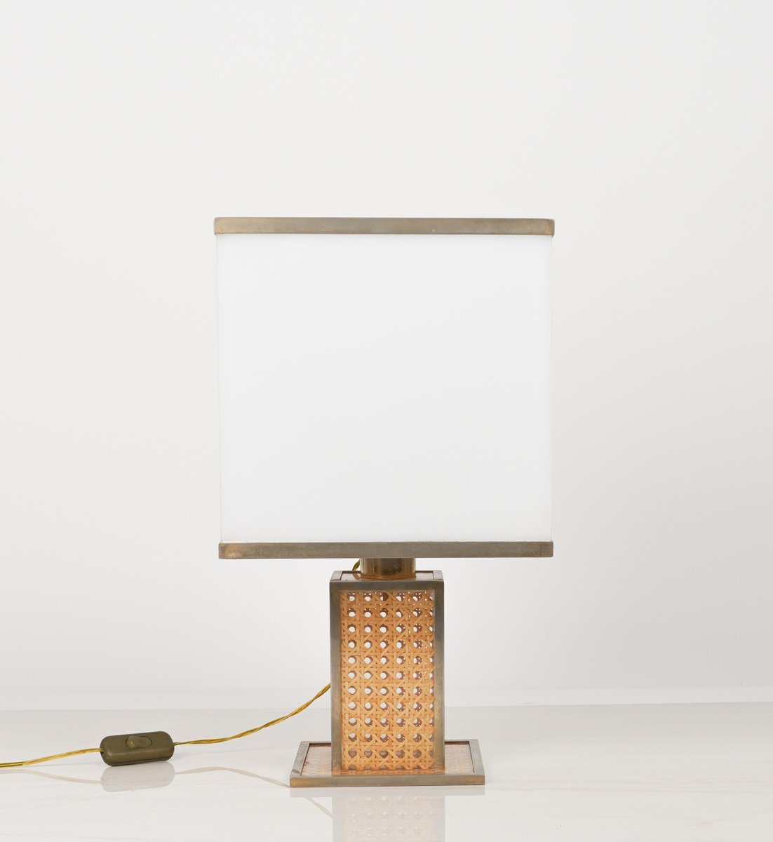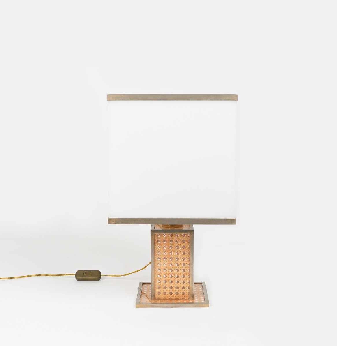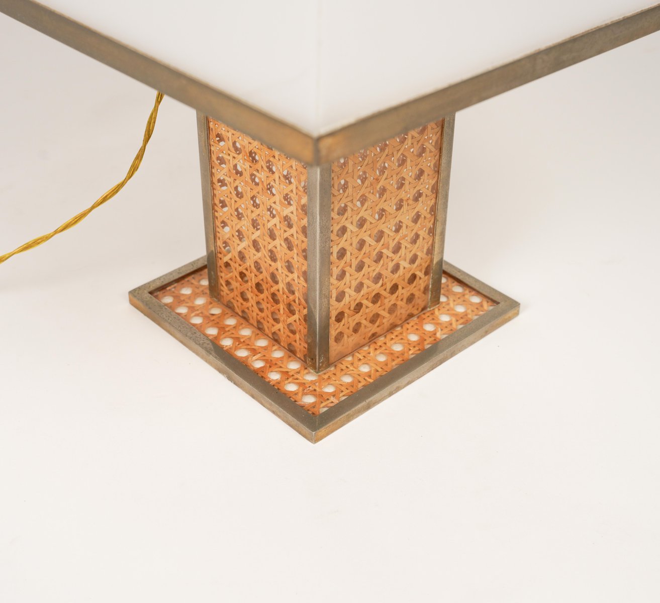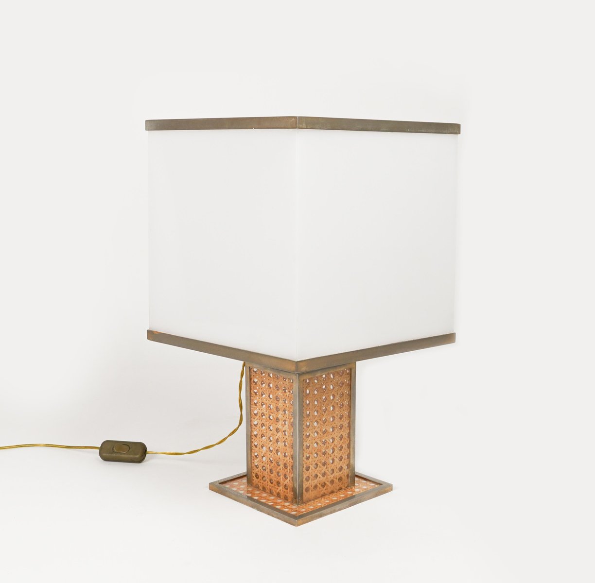 Lampe de Bureau en Verre Acrylique, Rotin et Laiton par Christian Dior, Italie, 1970s