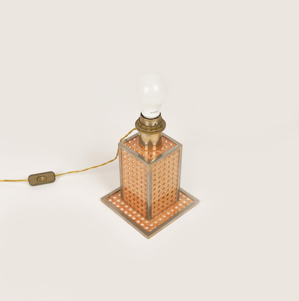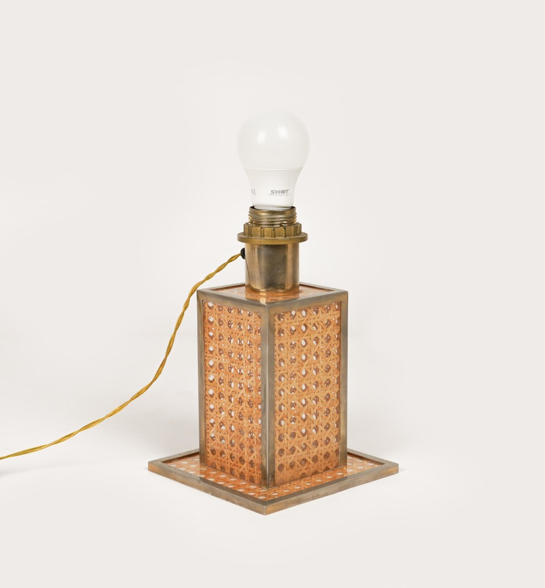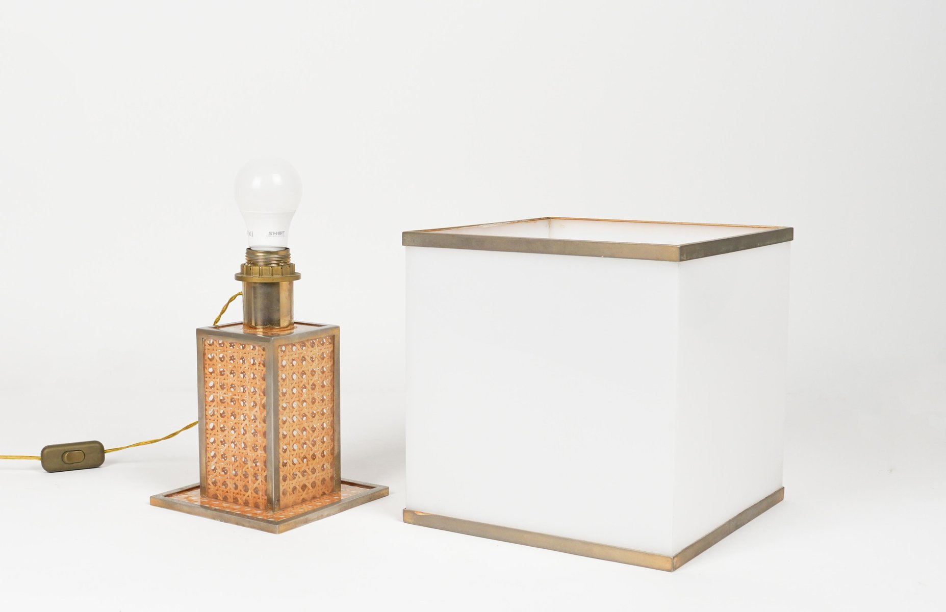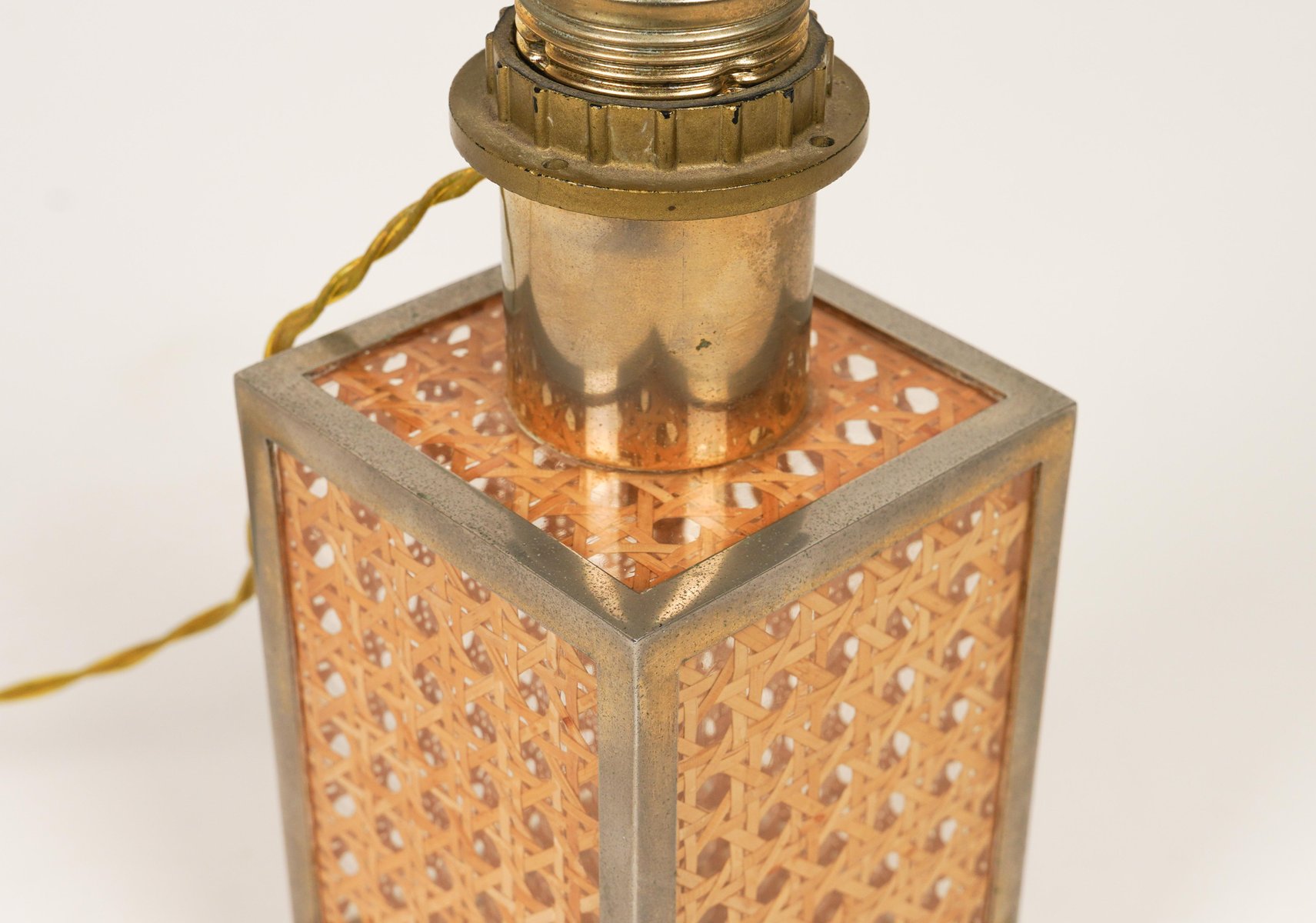 Lampe de Bureau en Verre Acrylique, Rotin et Laiton par Christian Dior, Italie, 1970s