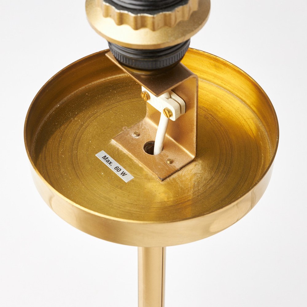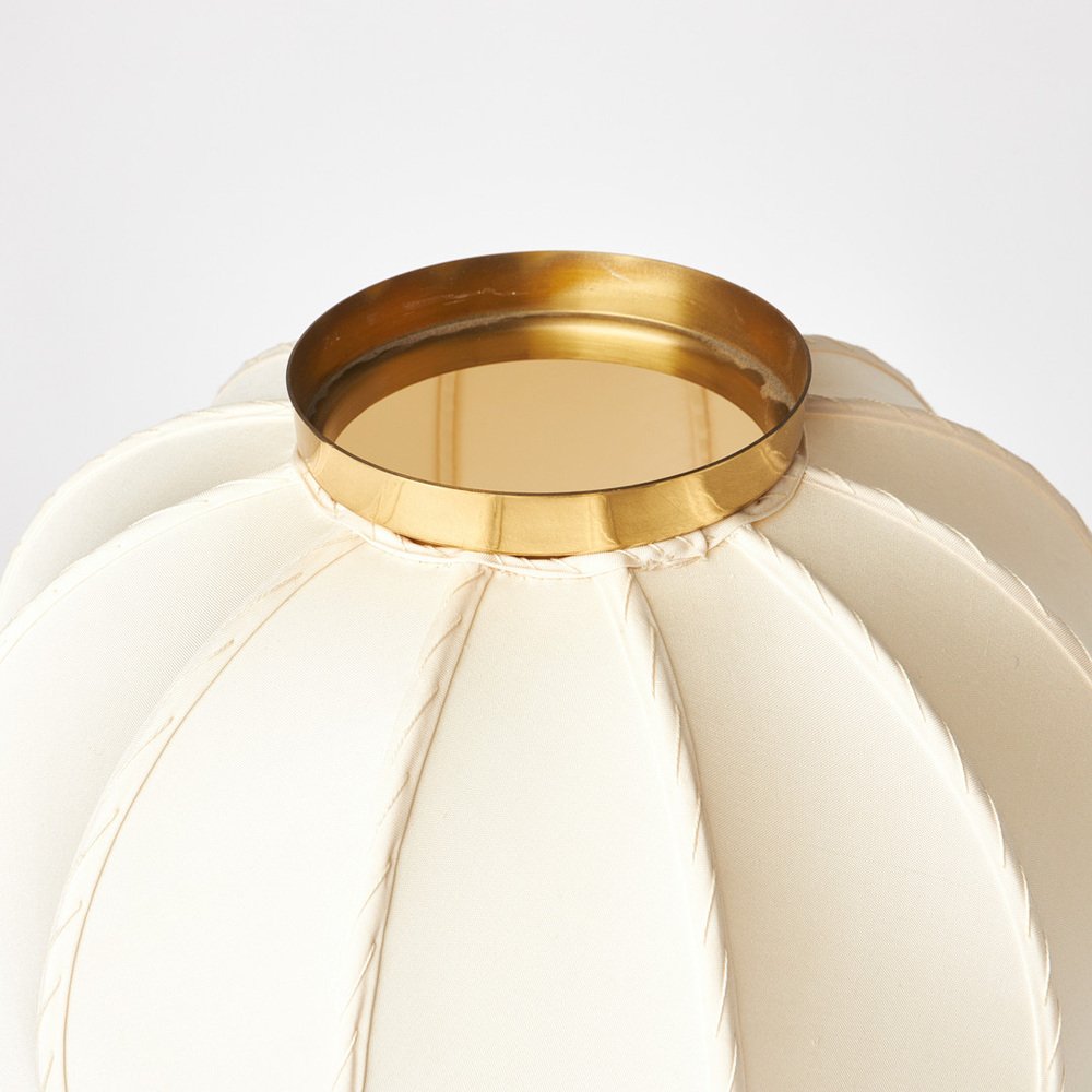 L'abat-jour en soie blanche cousu à la main diffuse une lumière douce et chaleureuse, tandis que la base en laiton ajoute une élégance discrète et moderne. Avec une hauteur d'environ 64 cm et un diamètre d'environ 29 cm, cette lampe est idéale pour un buffet, une table de chevet ou un bureau, apportant une présence douce et sculpturale à n'importe quelle pièce.