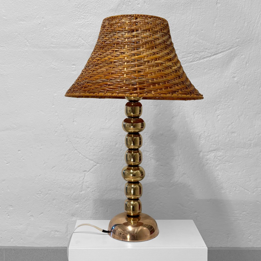 Lampe de Bureau Sphères Moderniste en Laiton et Rotin, Suède, 1960s