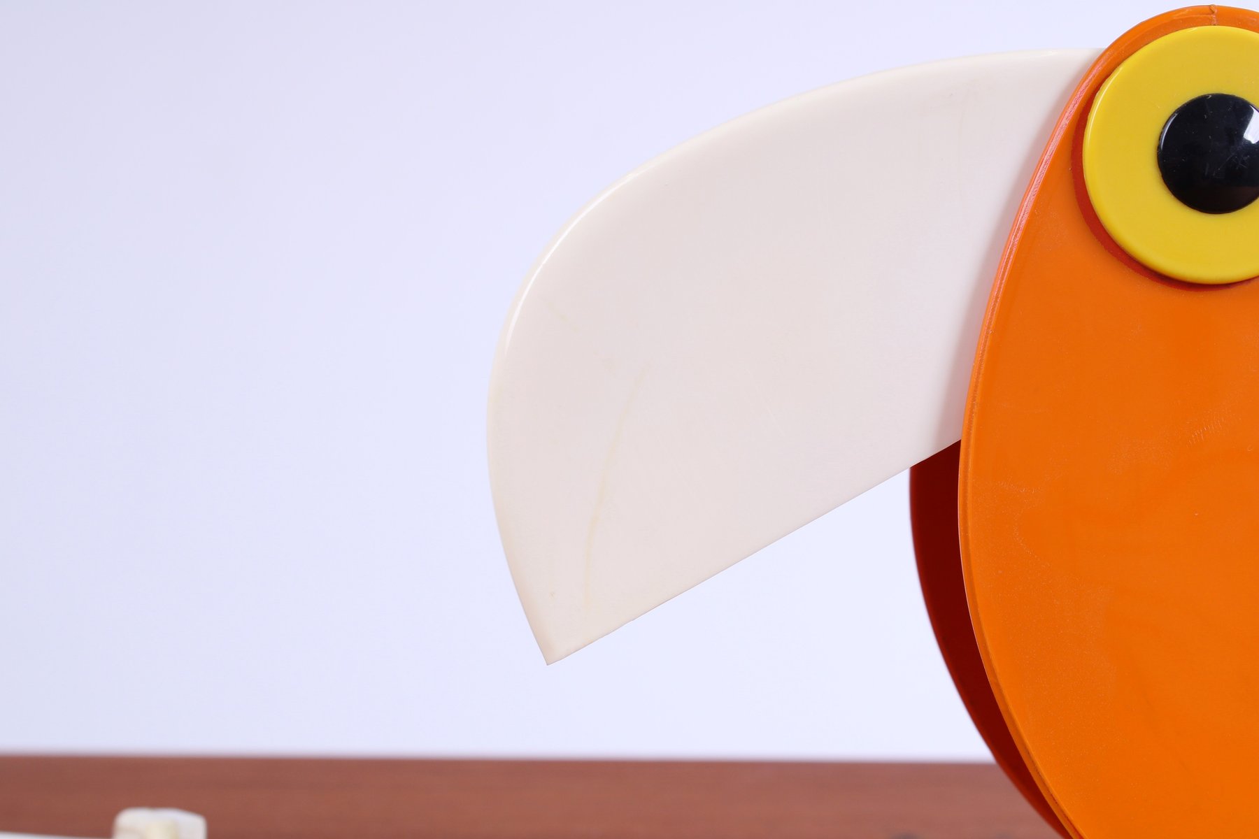Sought after lights nowadays. Condition: no melting areas, no burning marks, no cracks in the beak or in the orange body. Minor discoloration. Working order, all electrical is checked, wiring fine.