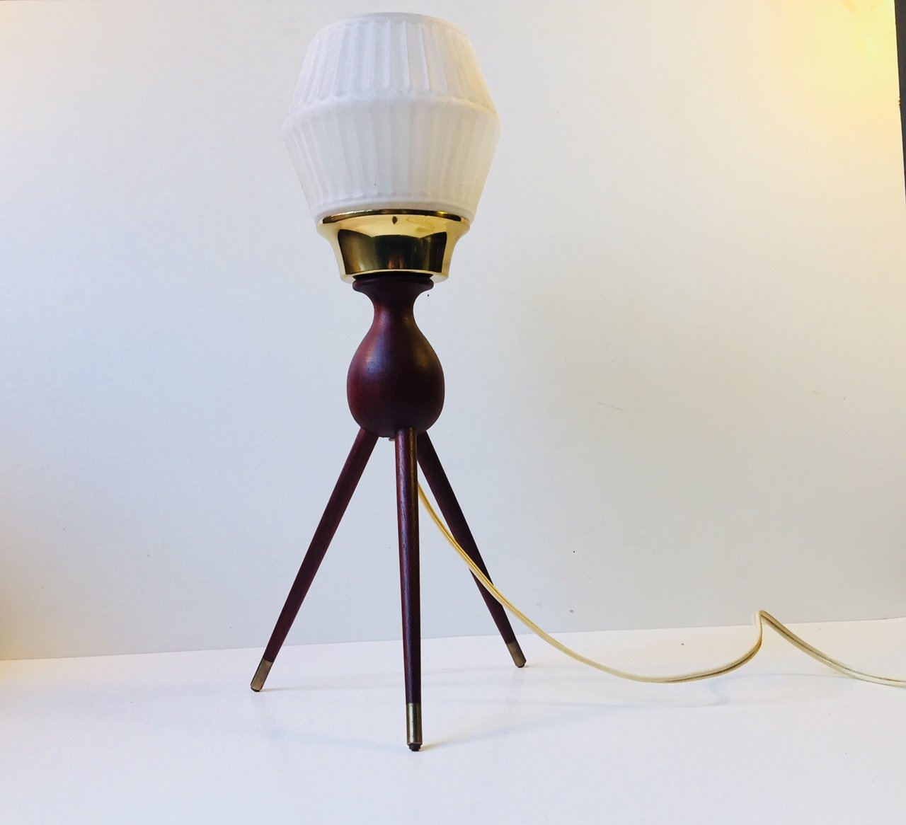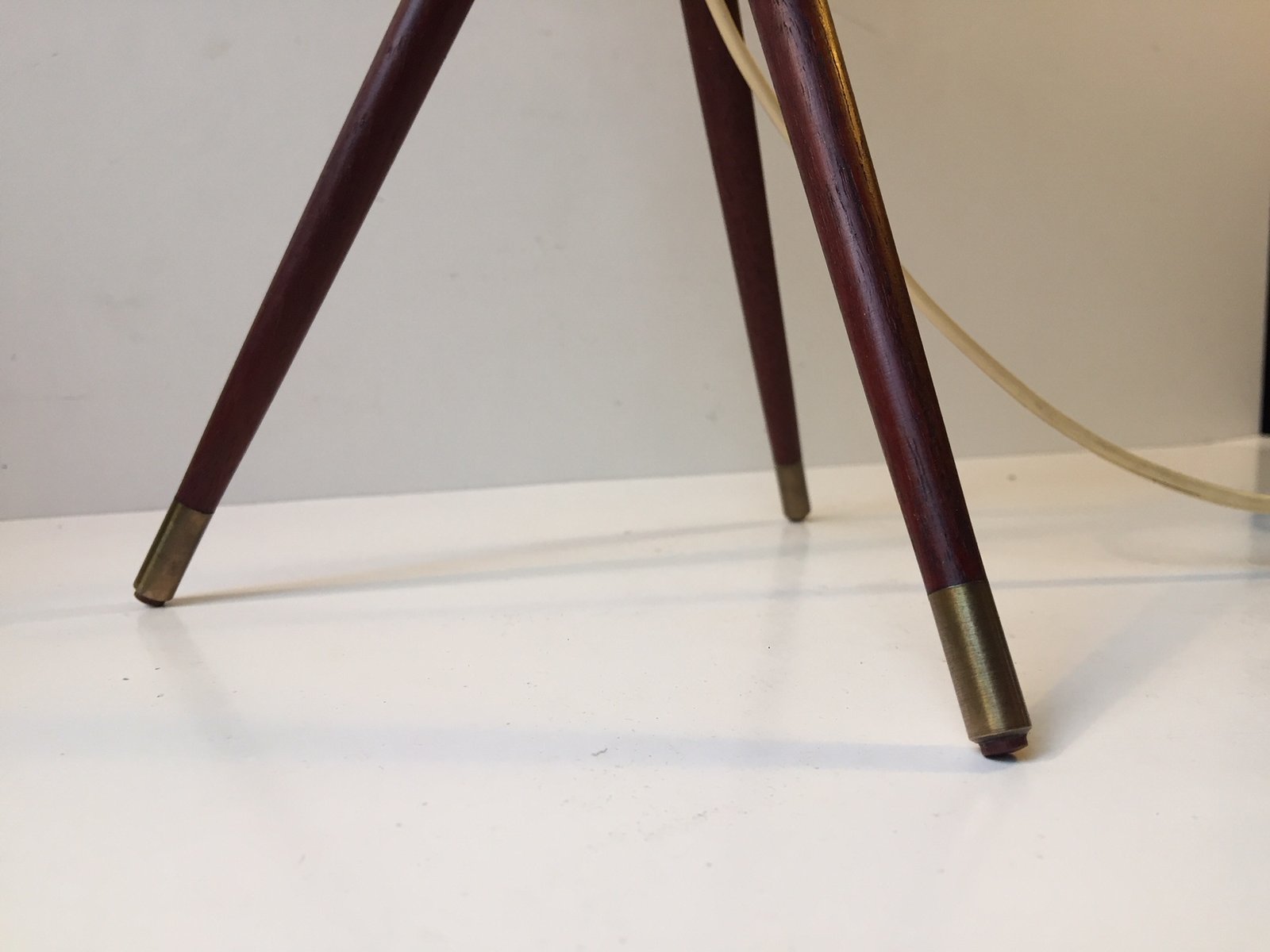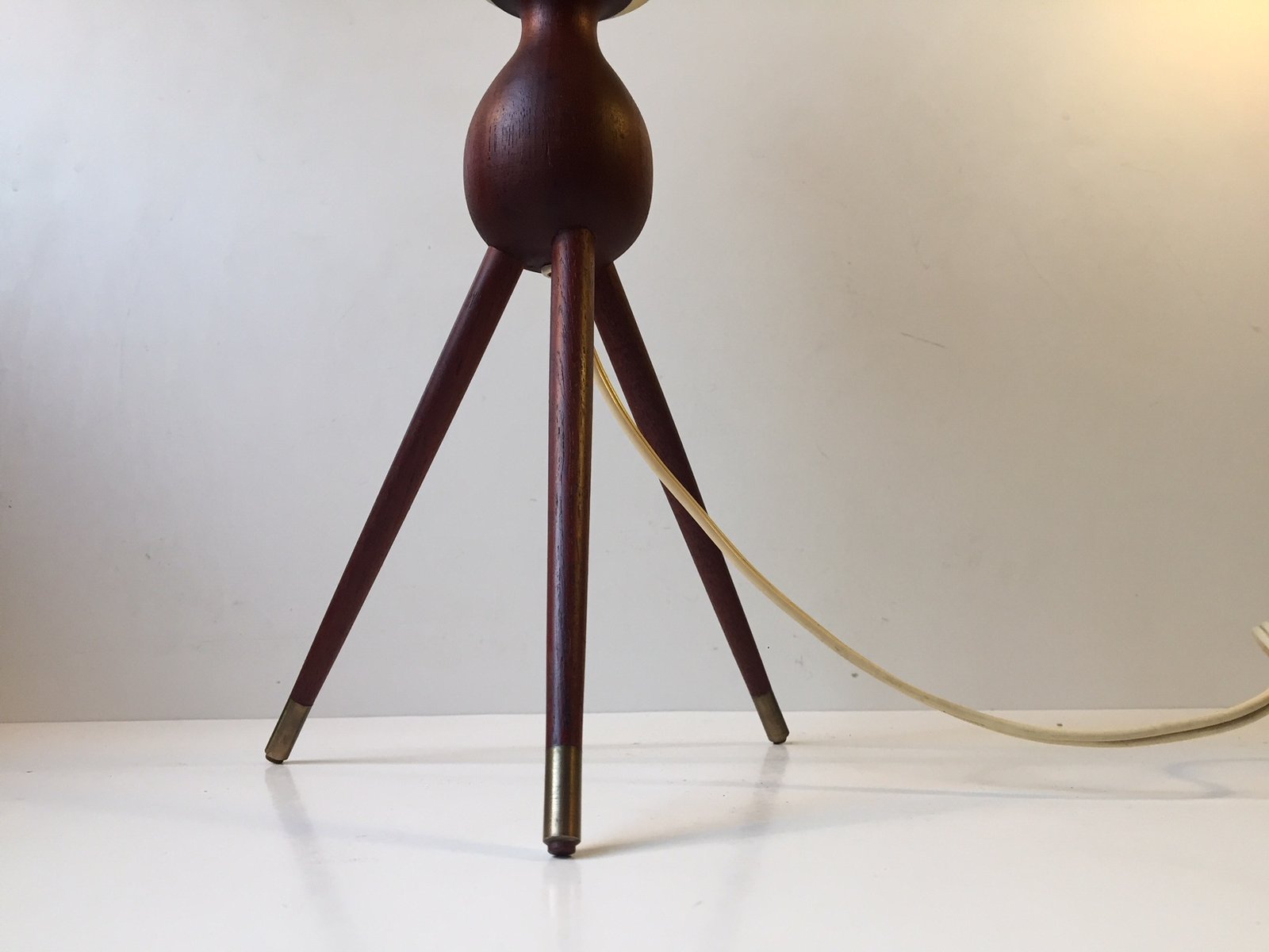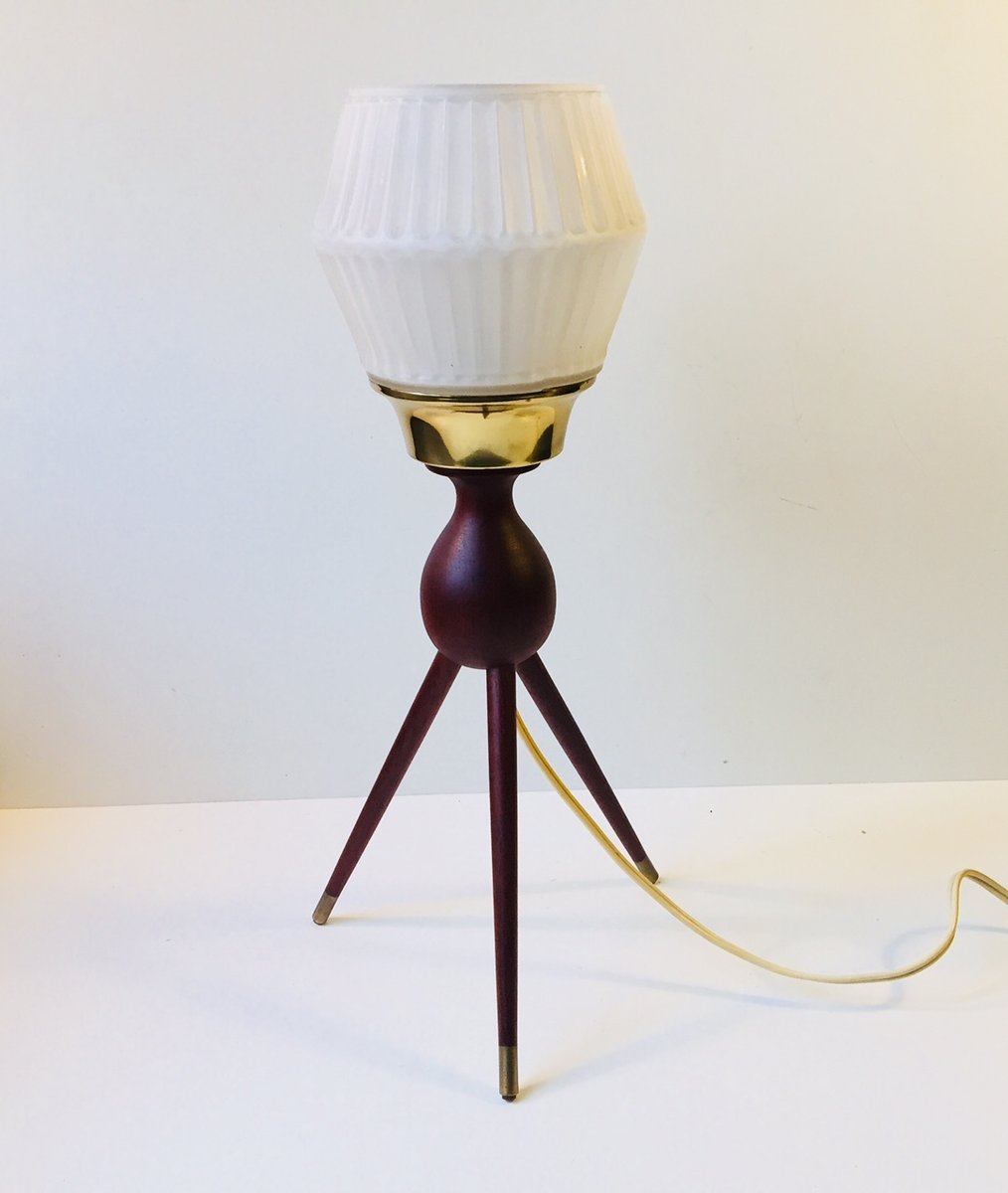 Lampe de Bureau Tripode Mid-Century en Teck, Laiton et Verre, 1950s