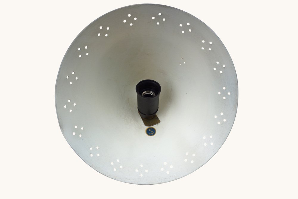 Turquoise table lamp, model GK14, by Erik Wärnå for Gnosjö Konstsmide, Sweden, 1950s. This elegant mid-century lamp features a perforated metal shade in a characteristic turquoise, combined with brass details and a slender, angled stem. The original wiring is visually consistent with its period; however, a professional inspection is recommended for daily use. Its compact footprint and focused light make it ideal as a writing, reading, or accent lamp, bringing authentic Scandinavian mid-century charm to any room.