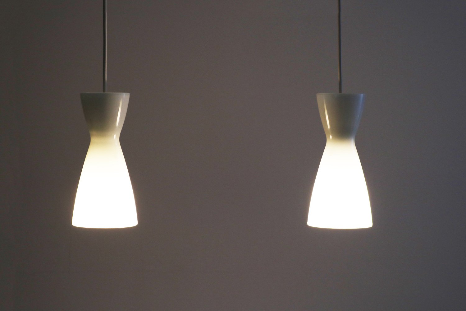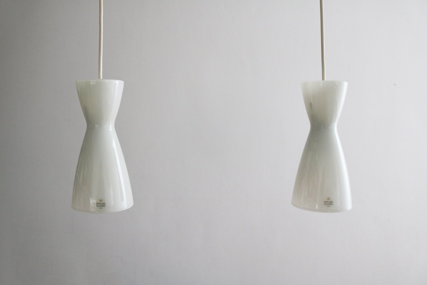 Lampes à Suspension Diabolo par Peter Svarrer pour Holmegaard, Denmark, 1970s, Set de 2
