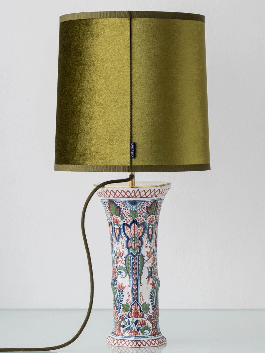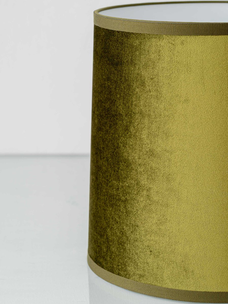 Pour compléter les motifs historiques en céramique, nous avons associé les bases à de nouveaux abat-jour en velours vert olive personnalisés. Le velours olive profond ajoute un contrepoint chaleureux et sophistiqué (et un côté légèrement moderne), créant un aspect luxueux à la fois éclairé et non éclairé. L'ensemble est complété par une nouvelle quincaillerie en laiton et des cordons en tissu coordonnés pour une présentation soignée et cohérente.