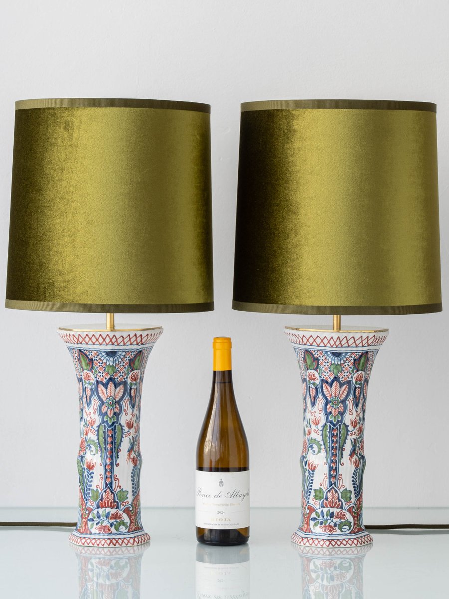 Vintage ceramic bases with the character you’d expect from age and handcraft. Please review photos closely for surface variation and any signs of wear consistent with vintage Delft pottery. Shades, fittings, and wiring are new.