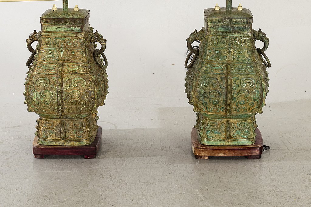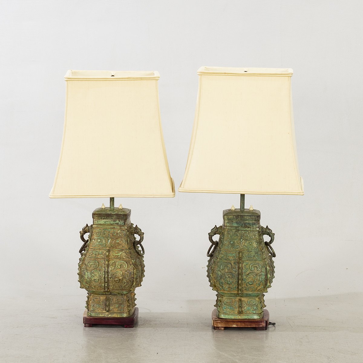 Lampes de Bureau en Bronze Patiné avec Abat-jour en Soie attribuées à William Billy Haines, 1960s, Set de 2