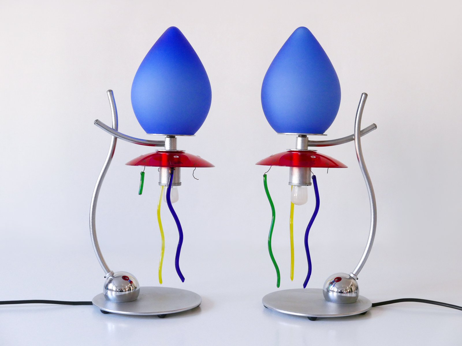 Ensemble de deux lampes de table étonnantes. Modèle "Giocasta Notte". Conçue par Andrea Anastasio pour Artemide, Italie, années 1990.