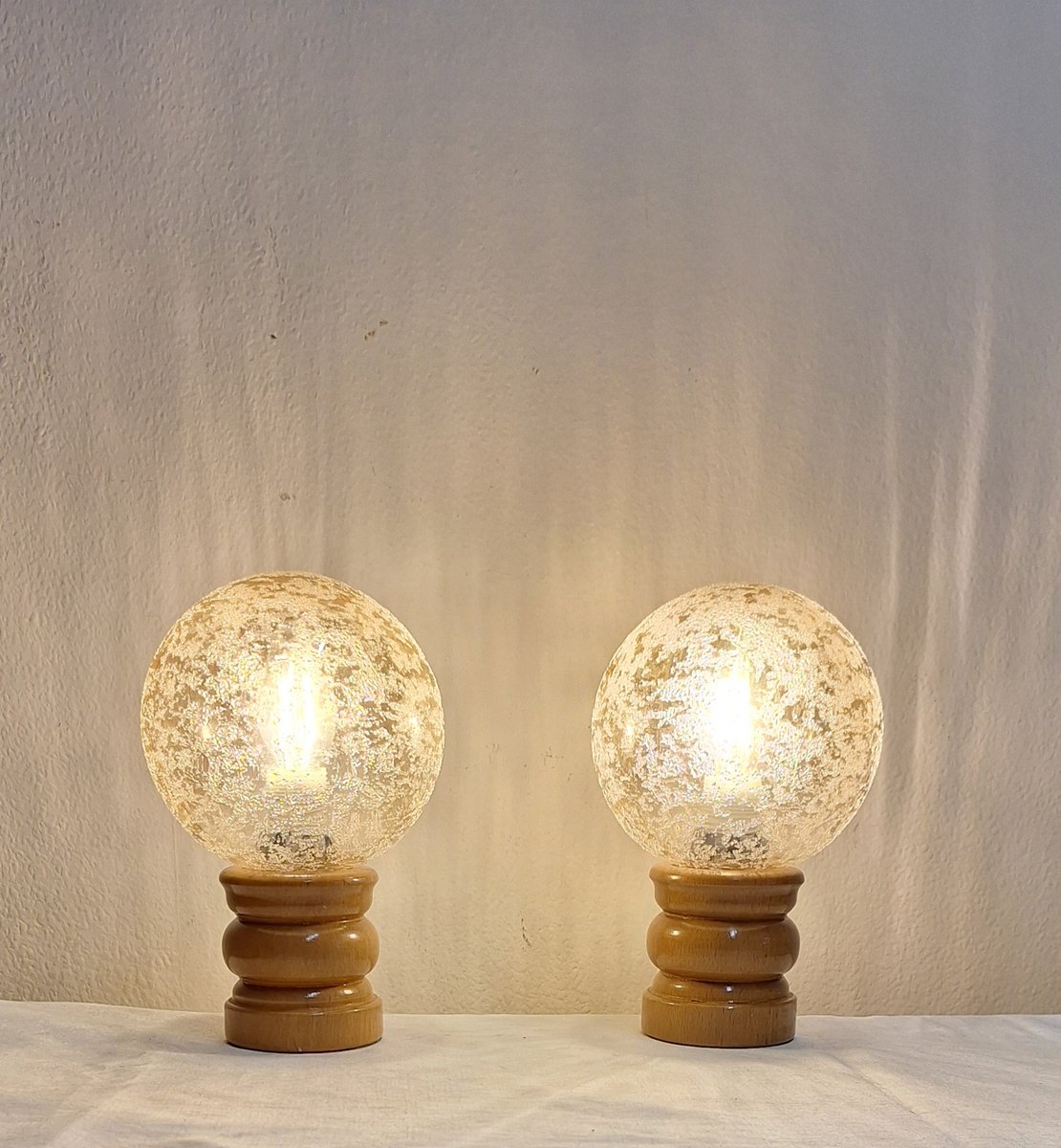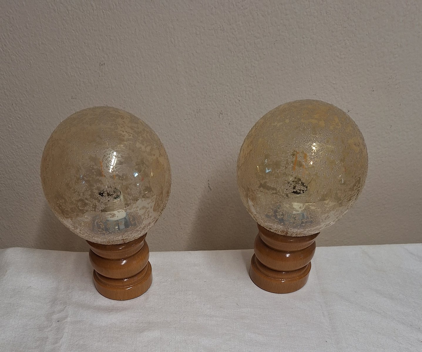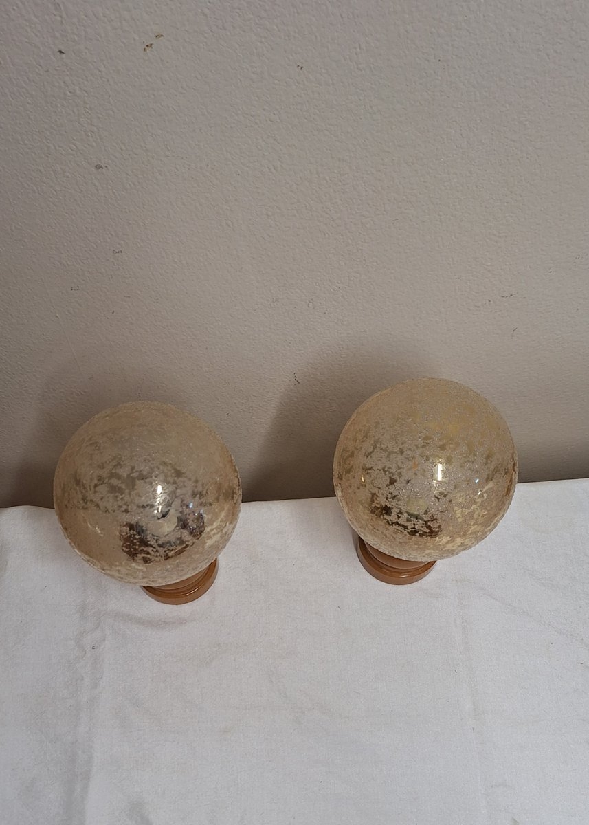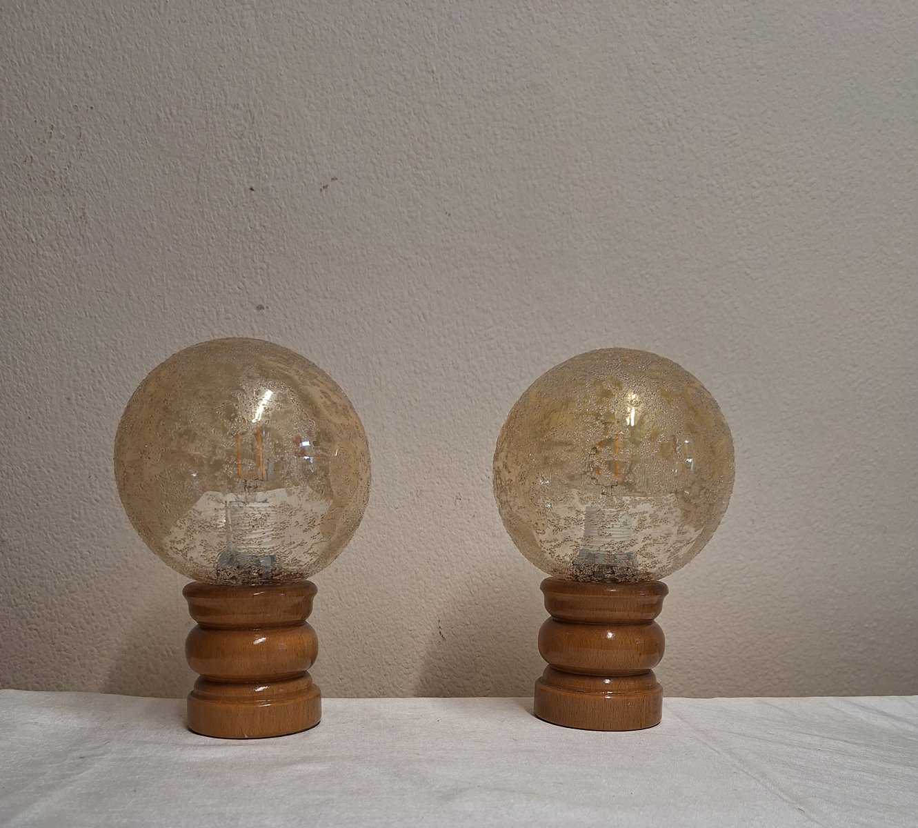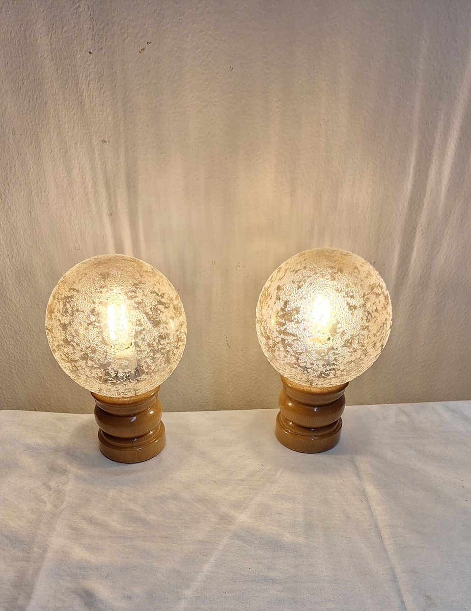 Lampes de Chevet Vintage avec Socles en Bois de Hêtre Laqué et Abat-jour Sphériques en Verre Teinté, 1970s, Set de 2