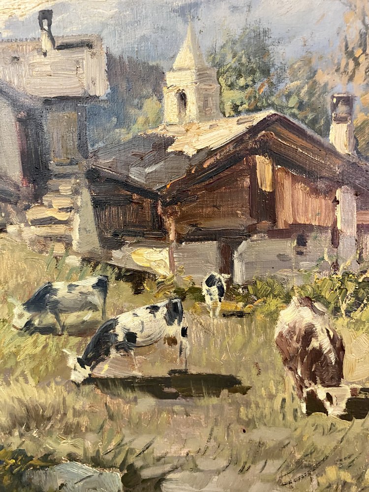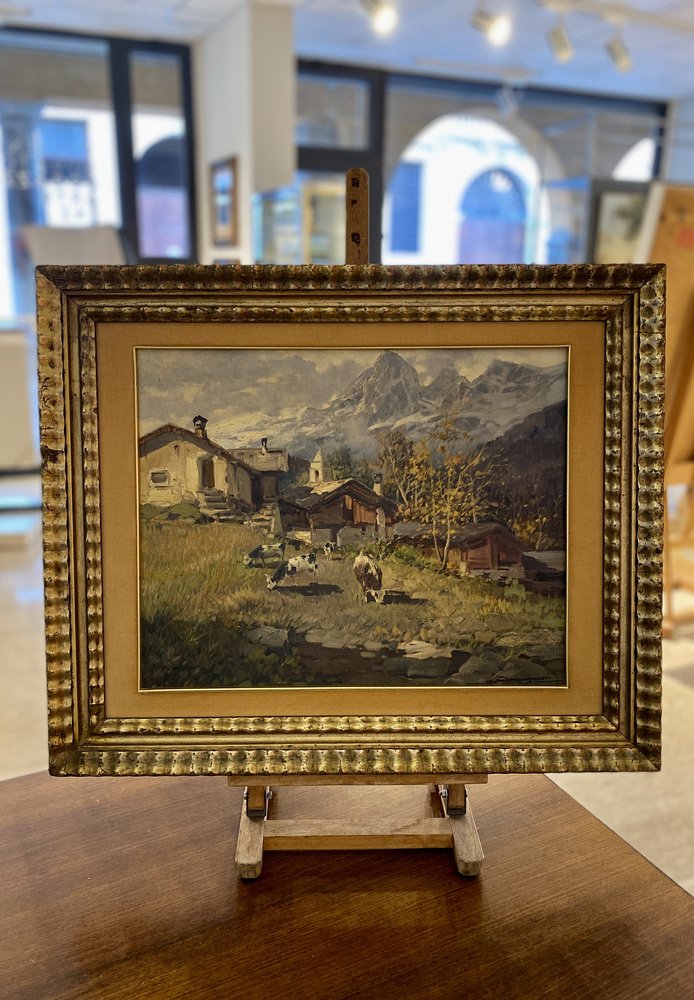 Licinio Campagnari, Valle di Champoluc, Huile sur Toile, Encadrée