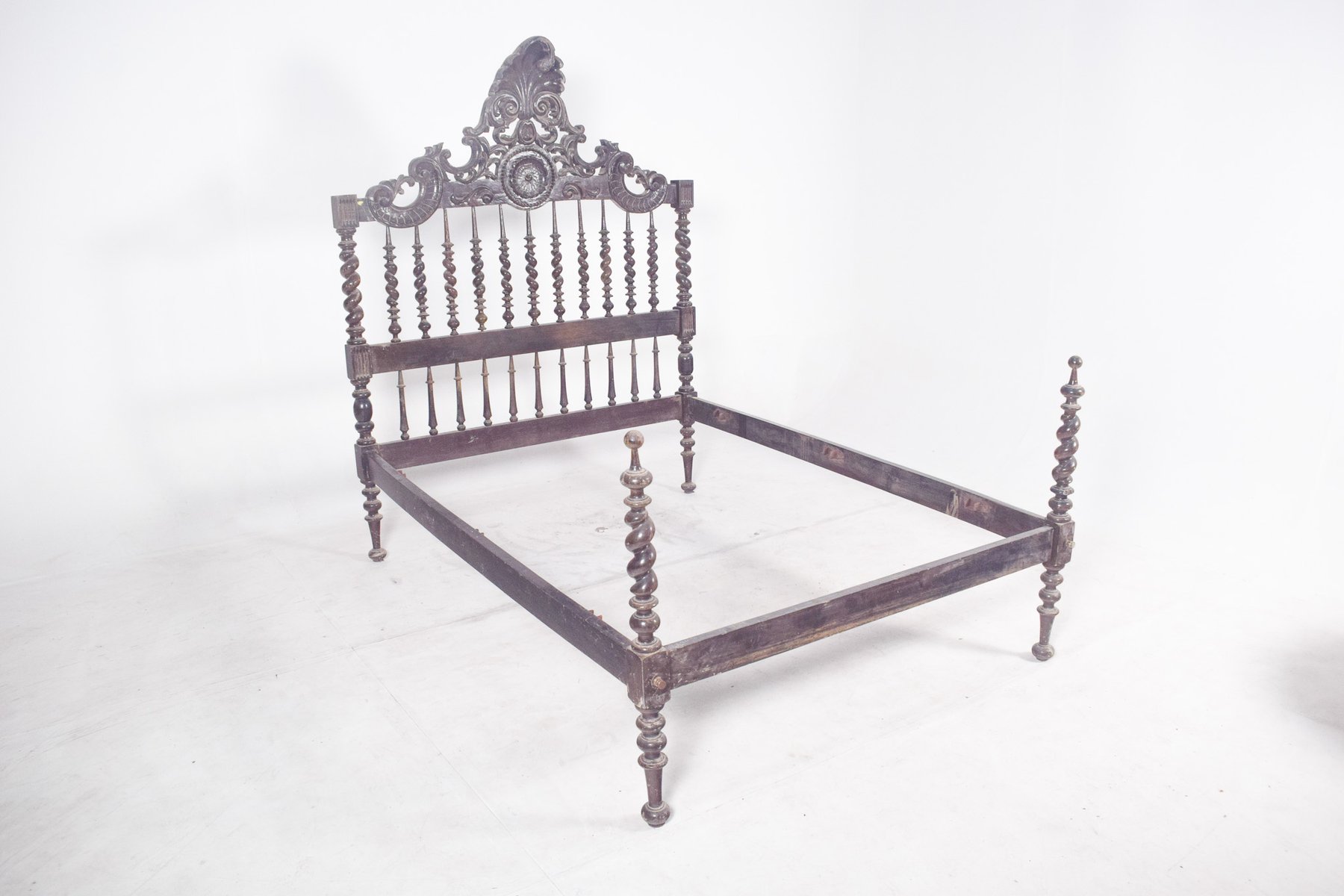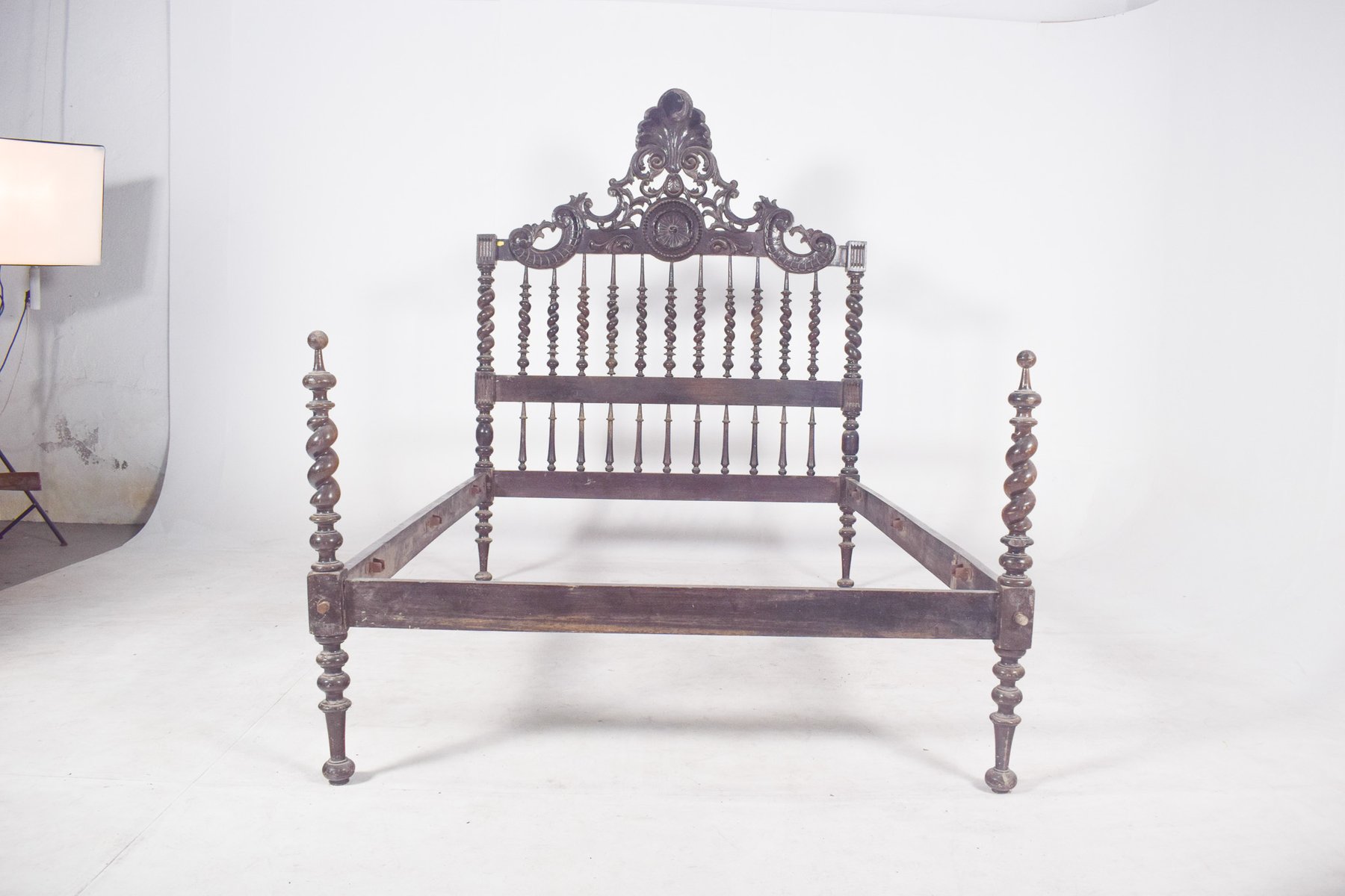 Lit Double Sculpté et Tourné, Portugal, 1910