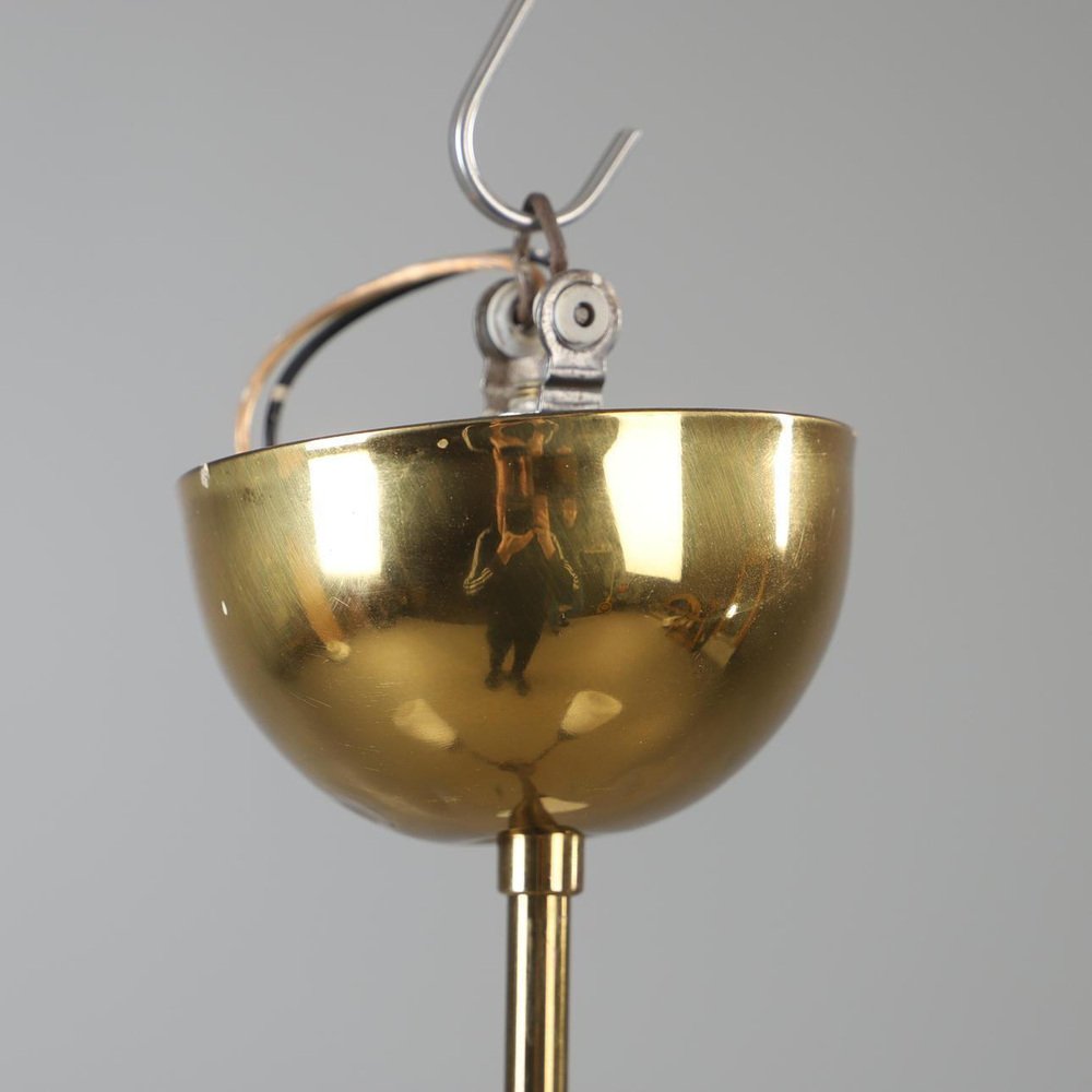 Détails : Origine : Suède Période : années 1950 Matériaux : teck, laiton, verre opalin Nombre de lumières : 3 État : très bon état vintage avec une légère patine due à l'âge sur le laiton