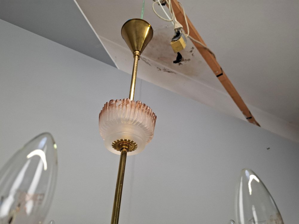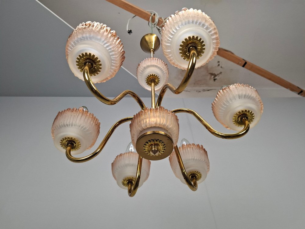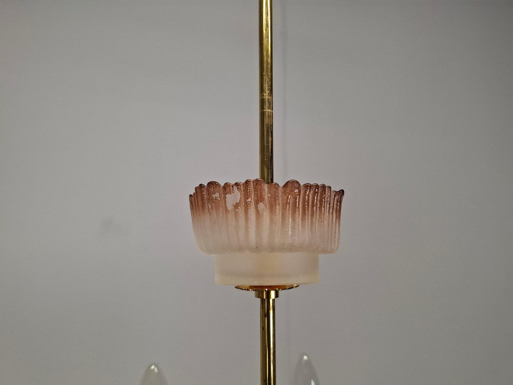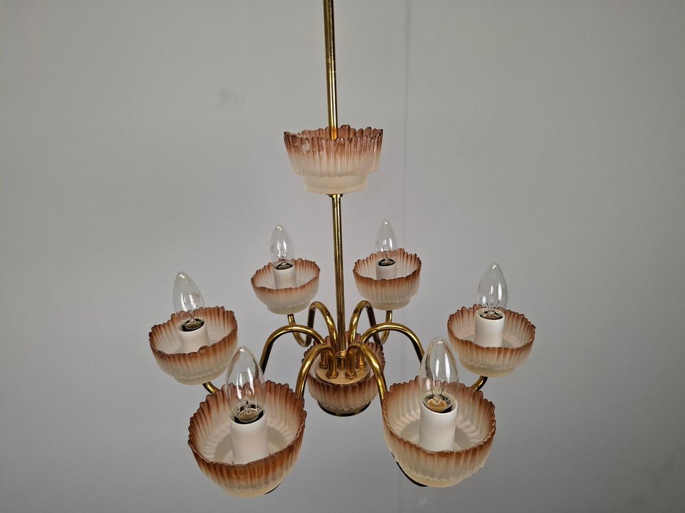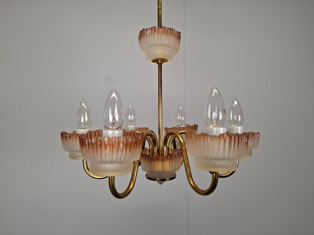 Lustre à 6 Bras Mid-Century en Laiton et Verre Givré, elezný Brod, 1960s