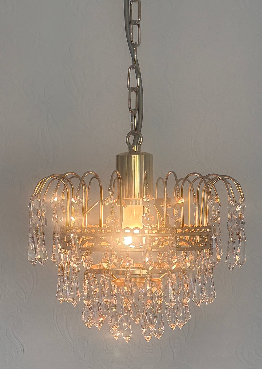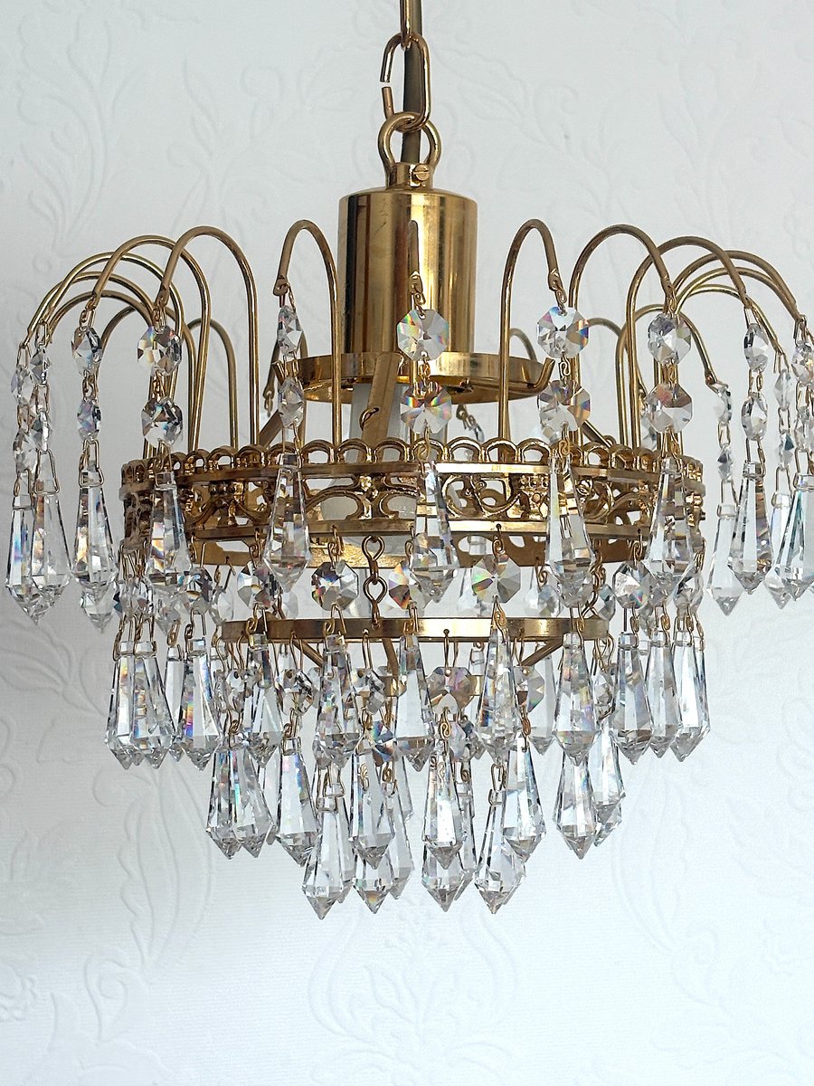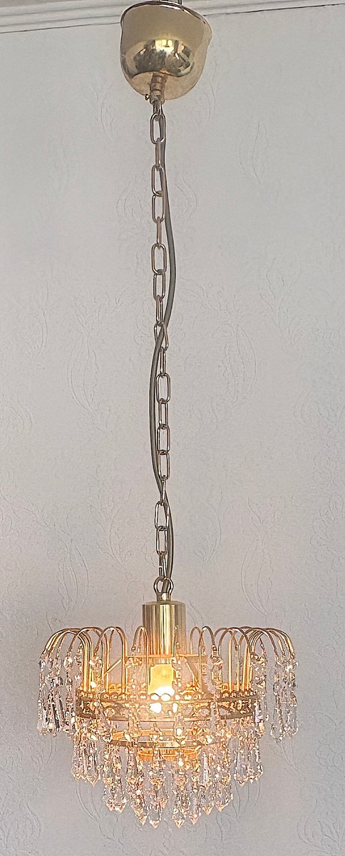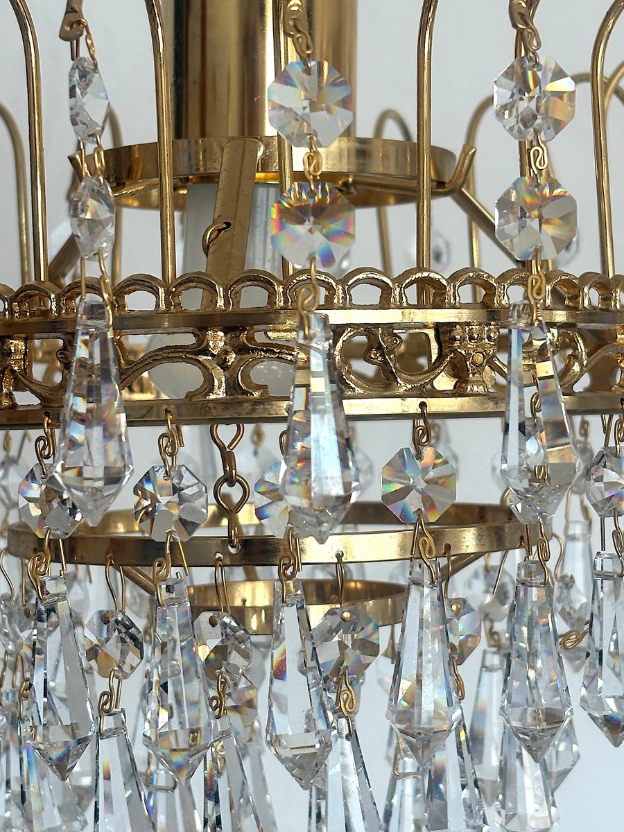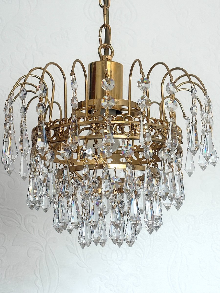 Lustre en Laiton et Cristal de Plomb par Joska Bodenmais, 1970s
