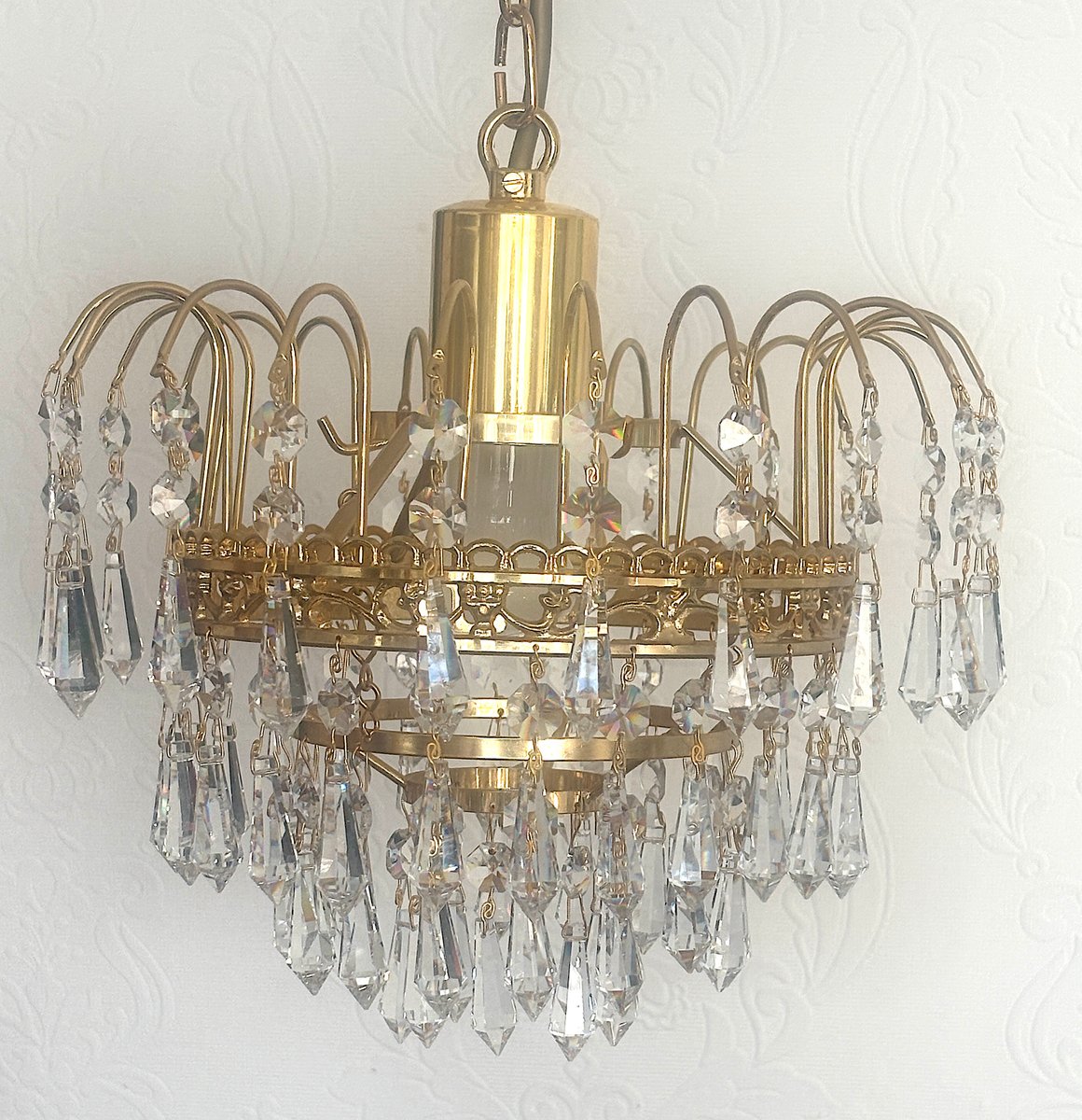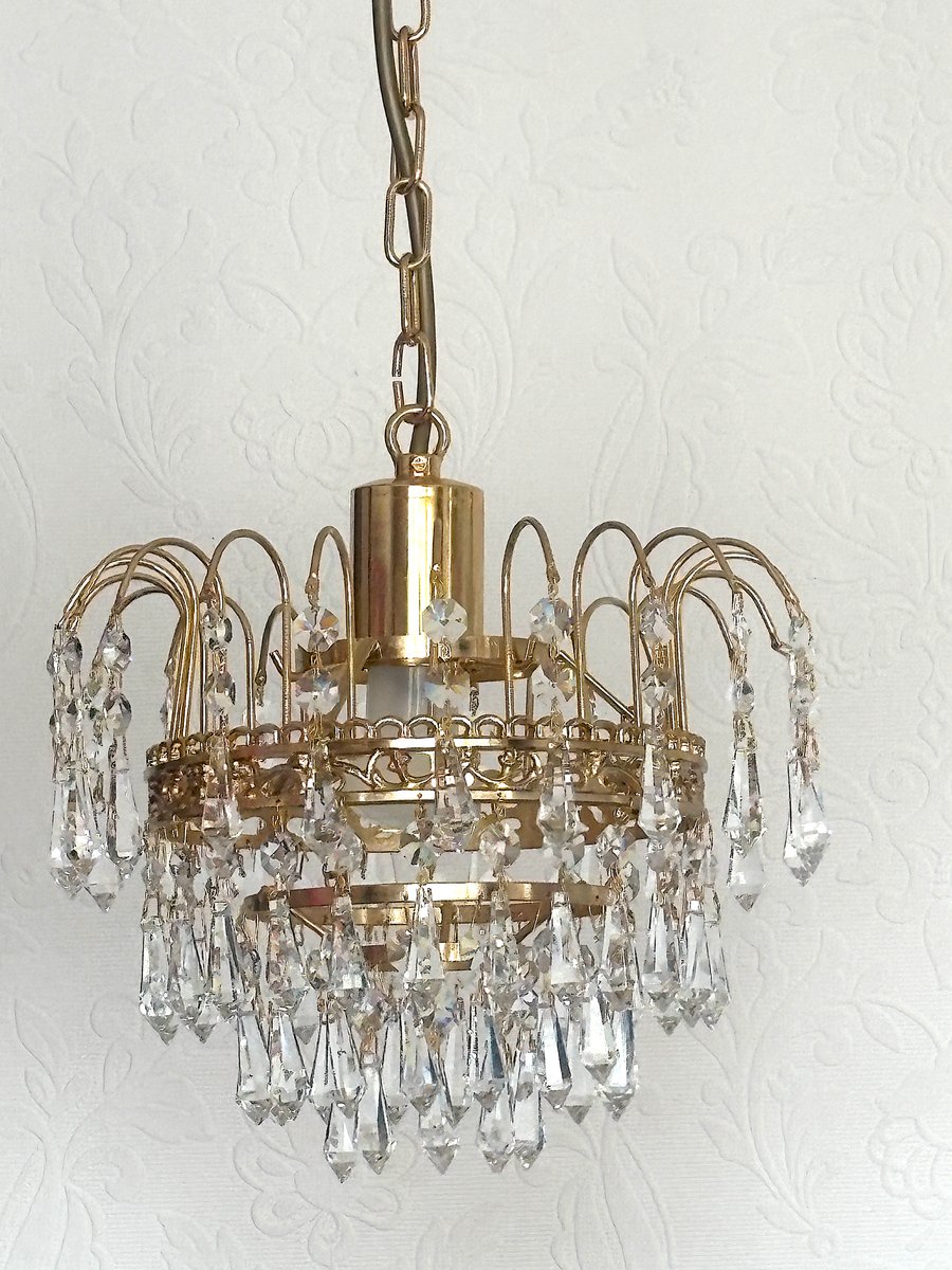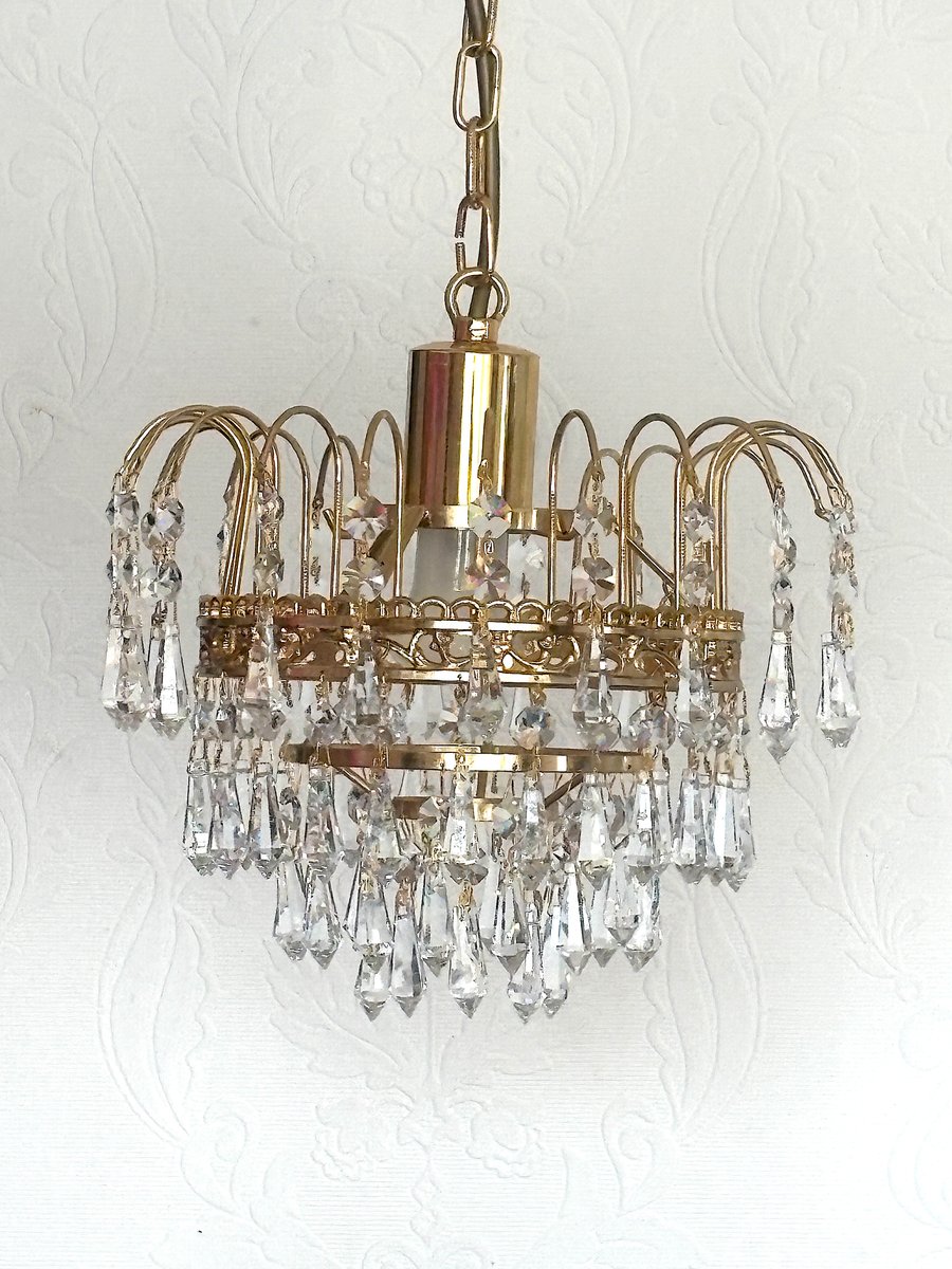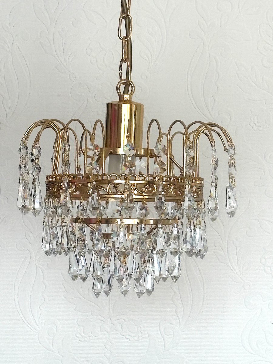 Lustre en Laiton et Cristal de Plomb par Joska Bodenmais, 1970s