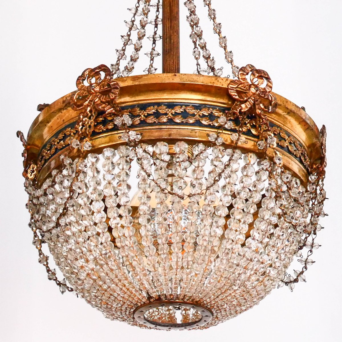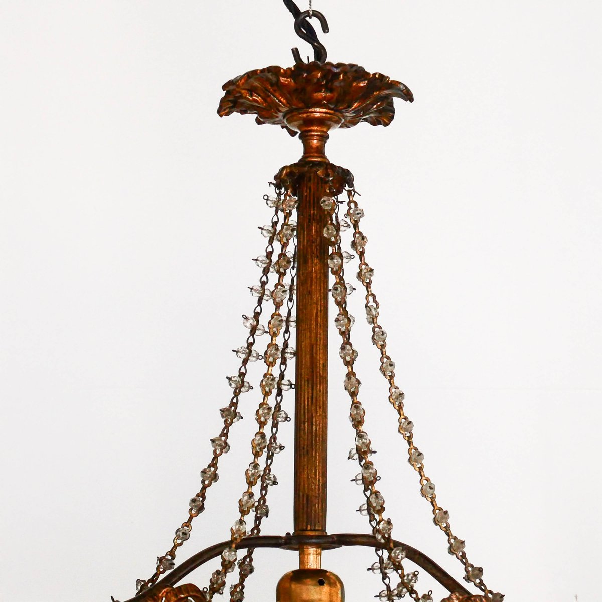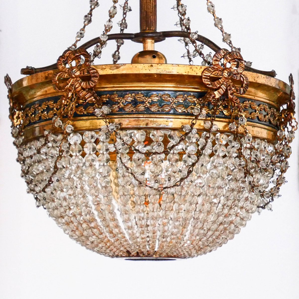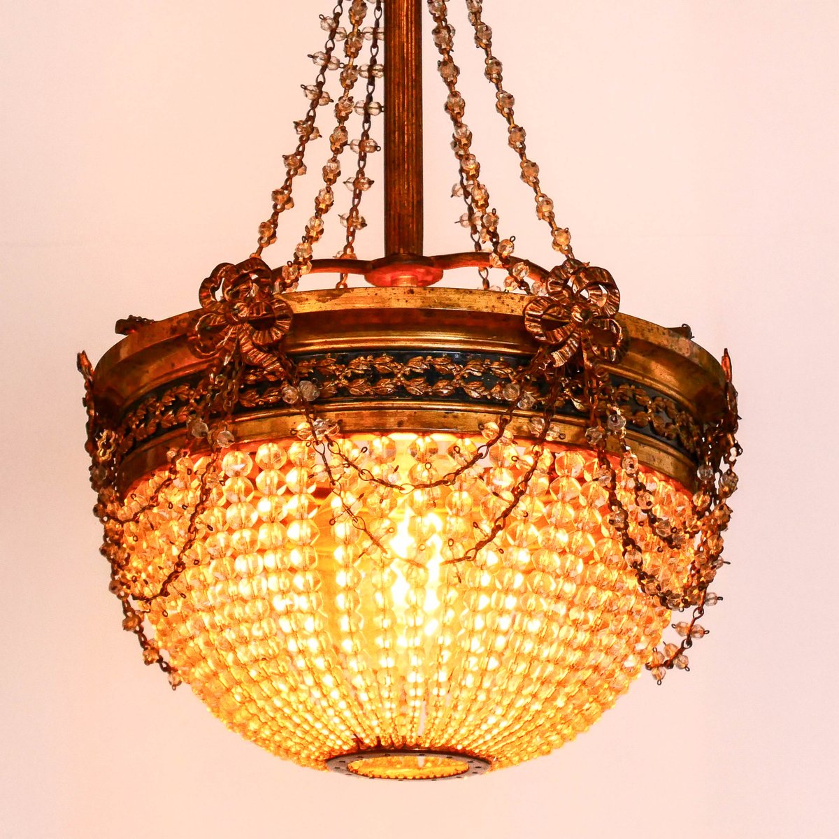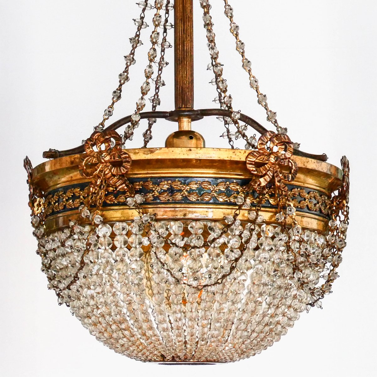 Lustre Napoléon III Style Louis XVI Antique en Bronze et Perles de Cristal, 1890s