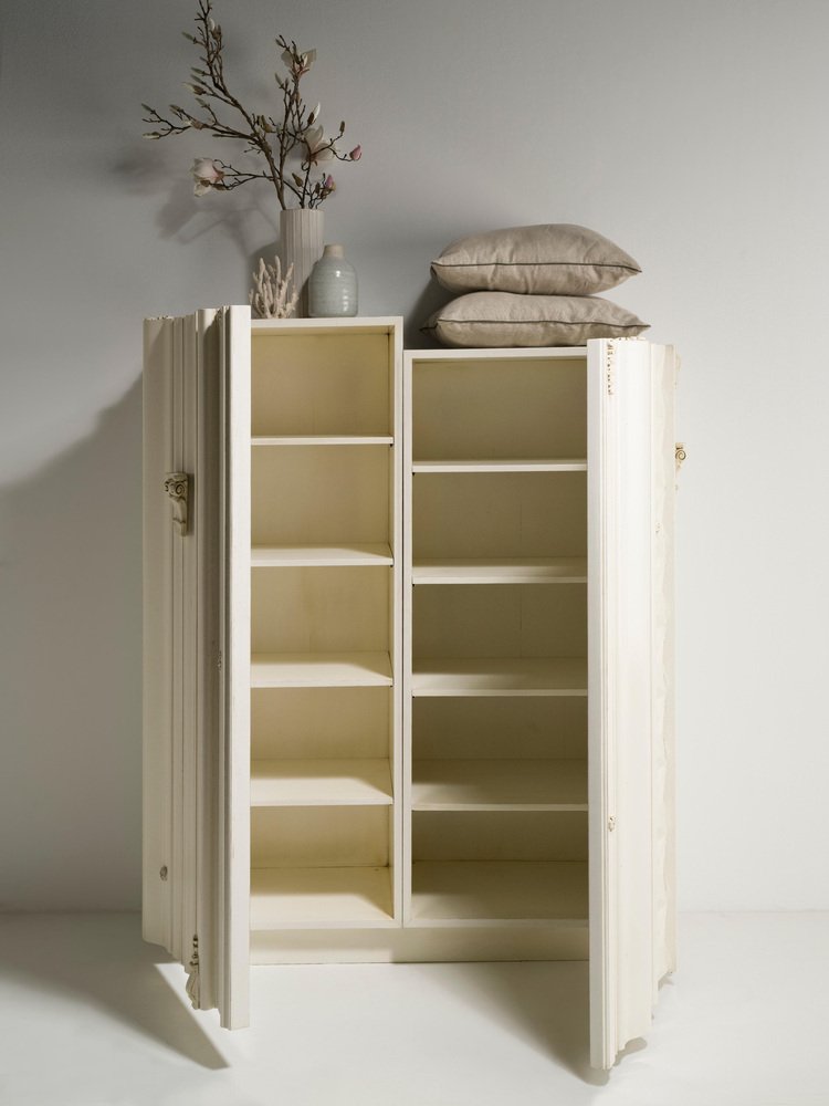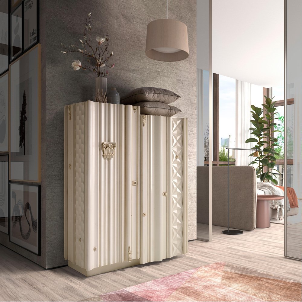 Bosco Cabinet by Lola Glamour Dimensions: D 47 x W 115 x H 149 cm Materials: Wood. with each piece in the Bosco series, we aim to bring a piece of the forest into your home, fusing the robustness of wood with the delicacy of artisanal design. This wardrobe not only serves a practical function, but also adds a touch of nature and sophistication to your daily life. Its two carefully carved doors evoke the image of a solid trunk divided into segments. When opened, a meticulously designed interior is revealed, with four shelves each that optimize space, allowing you to organize your belongings with elegance and efficiency. It is wood that allows us to build dream pieces and let our imagination fly, with its infinite possibilities.