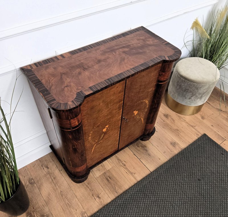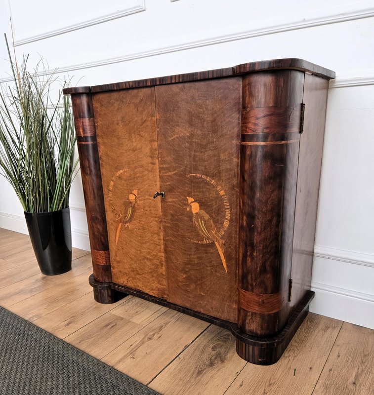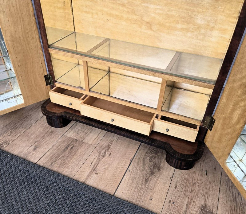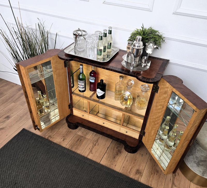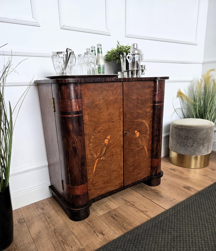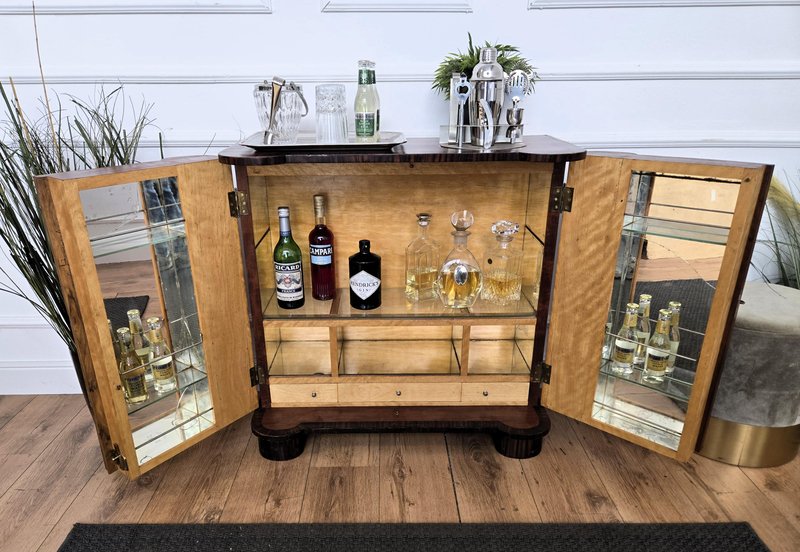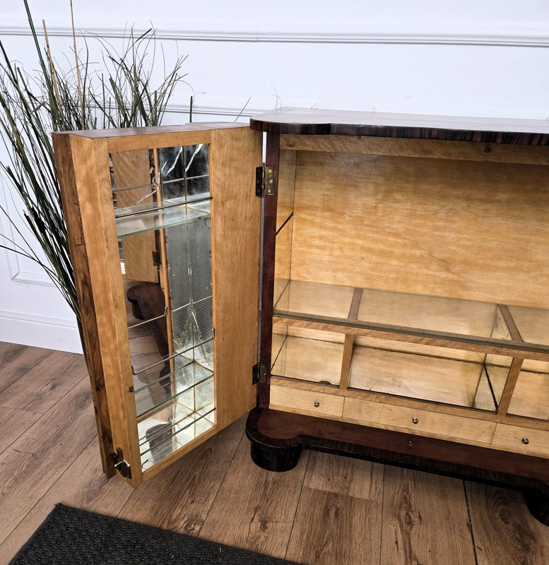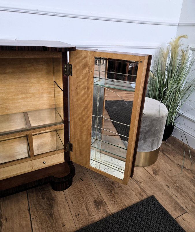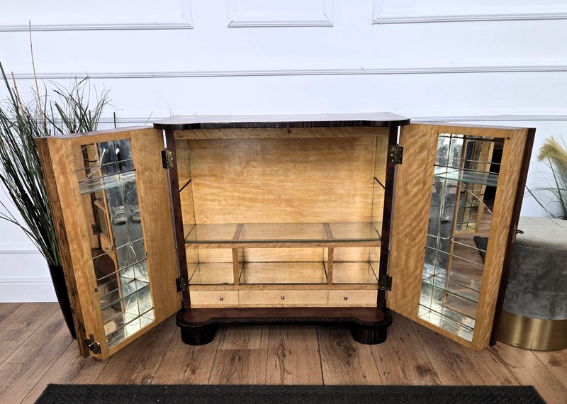 Meuble de Bar Art Déco Mid-Century Moderne en Loupe de Noyer avec Plateau en Verre, Italie, 1950s