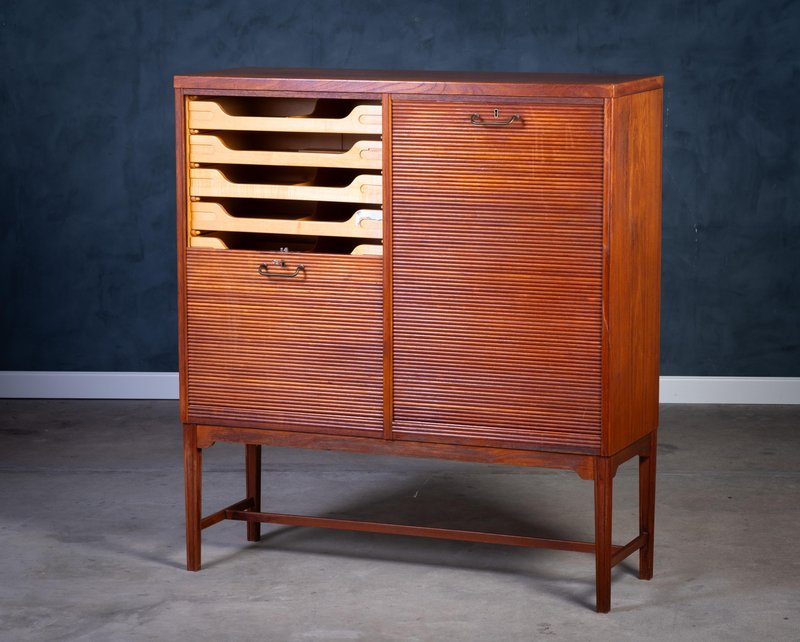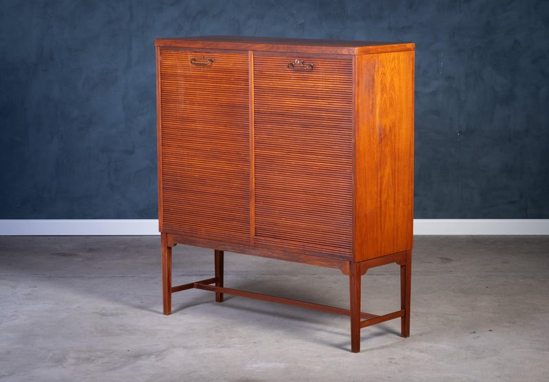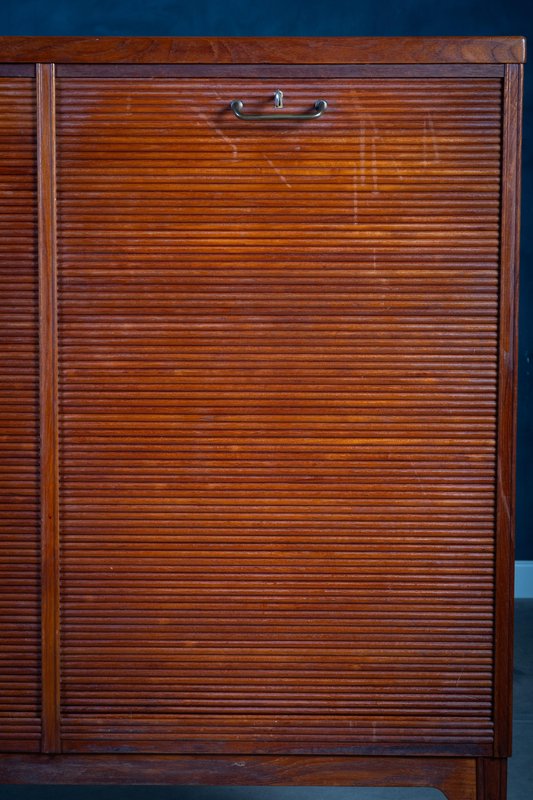 Meuble Tambour en Teck avec Poignée en Laiton, Danemark, 1960s