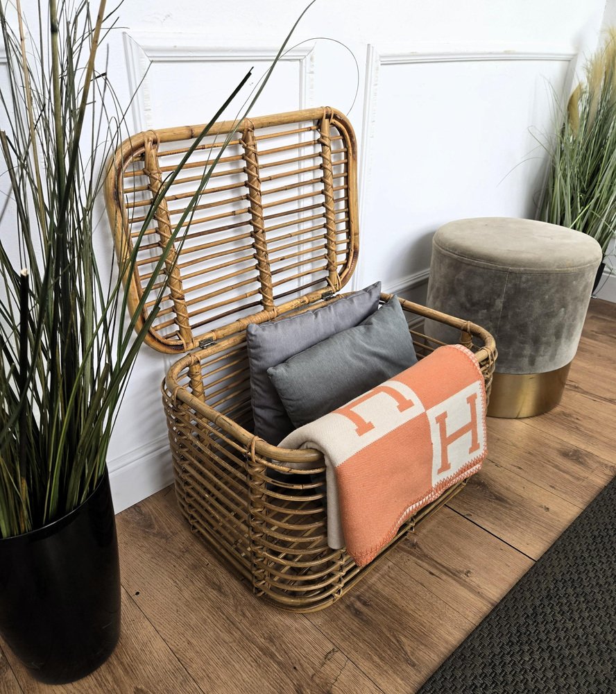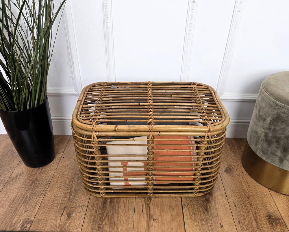 Panier Bohemian Riviera en Bambou et Rotin, Italie, 1960s