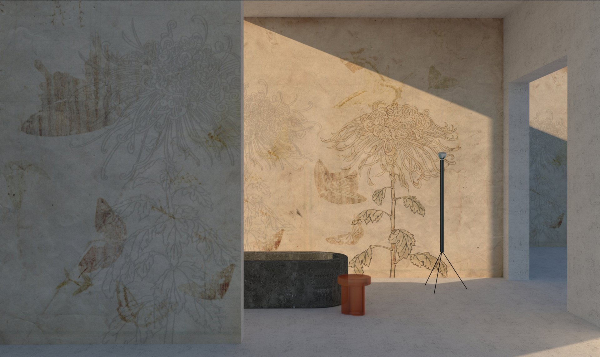 Officinarkitettura® wallpaper has cellulose and textile fibers base and vinilic surface. Fire proof certification B-s2,d0, odourless, transpirant and hypoallergenic"