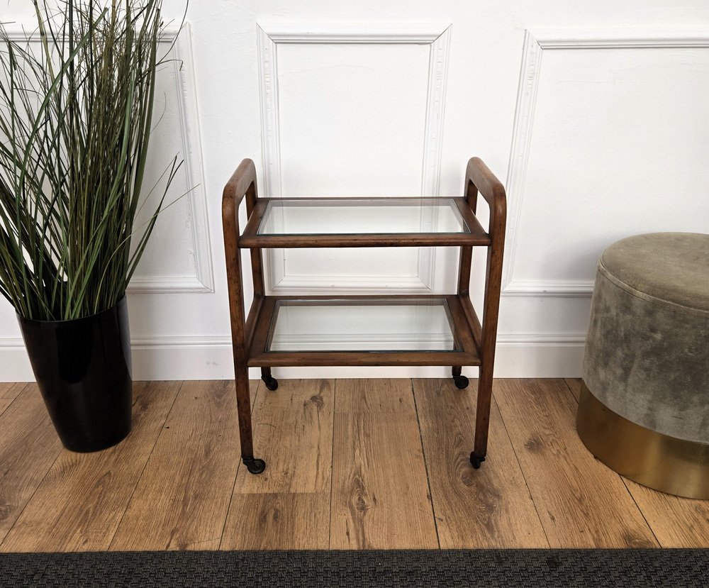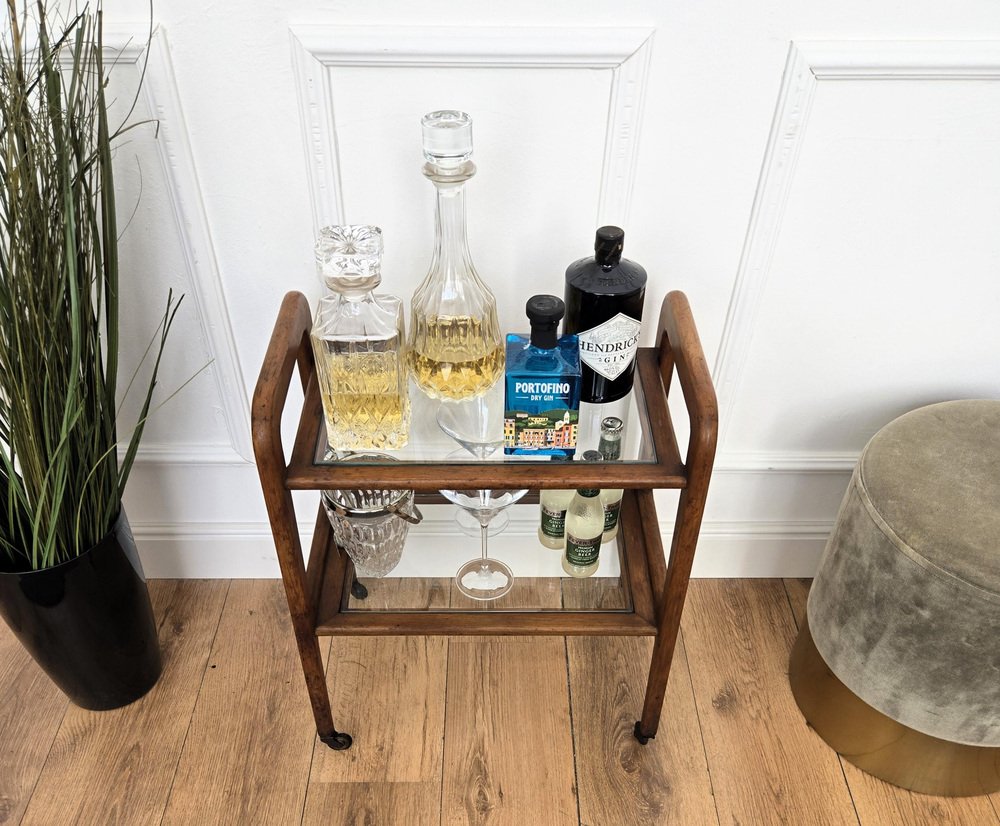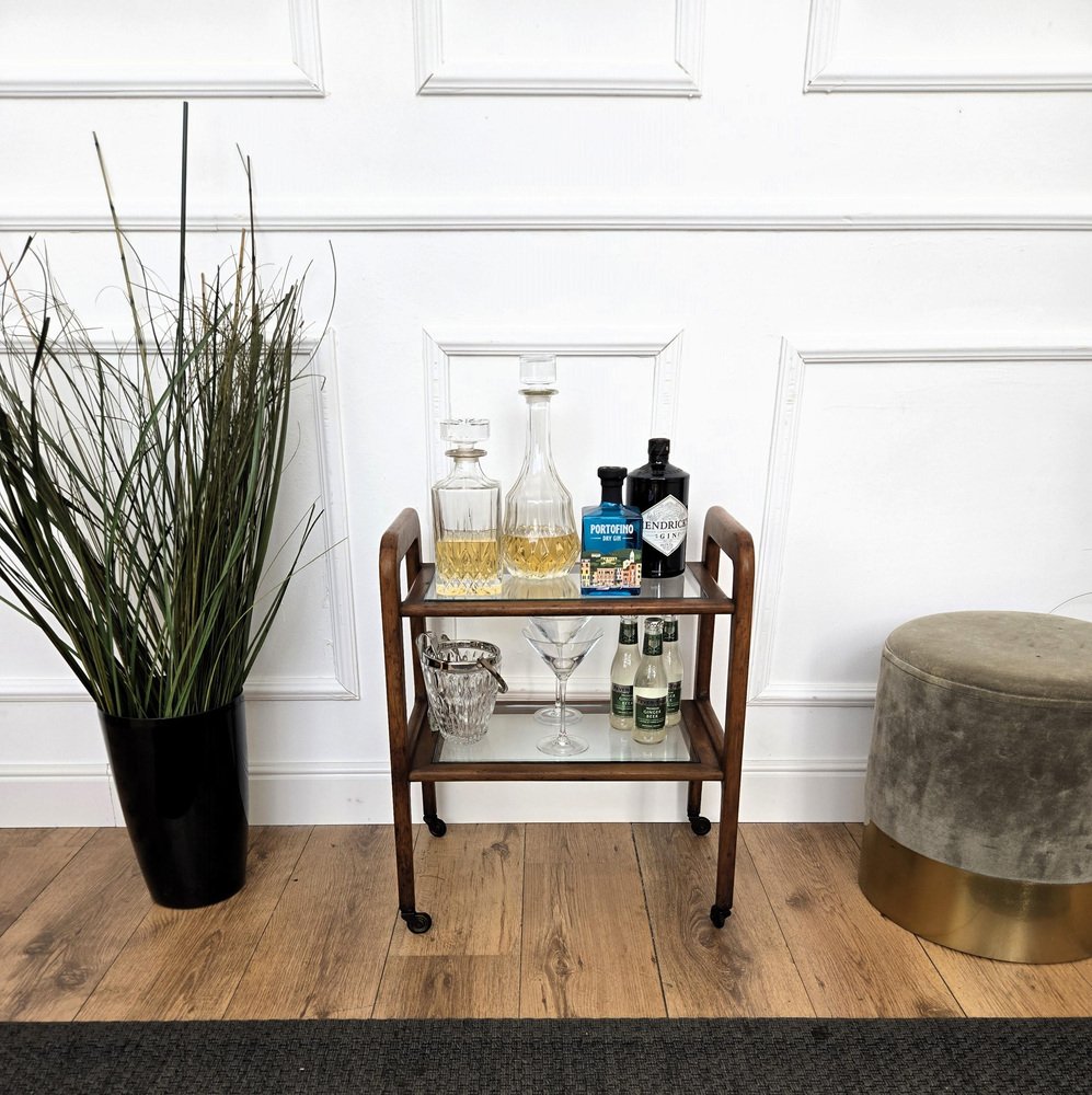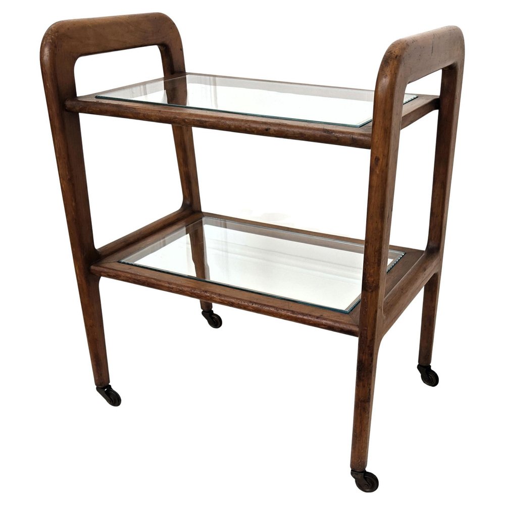 Petit Bar Sec Mid-Century en Bois et Laiton, Italie, 1960s