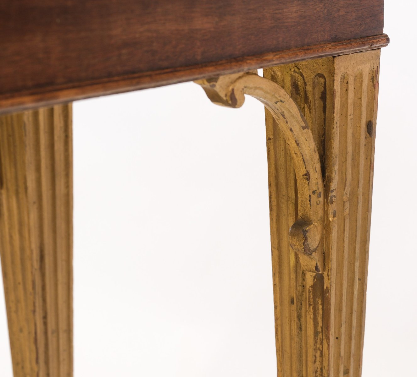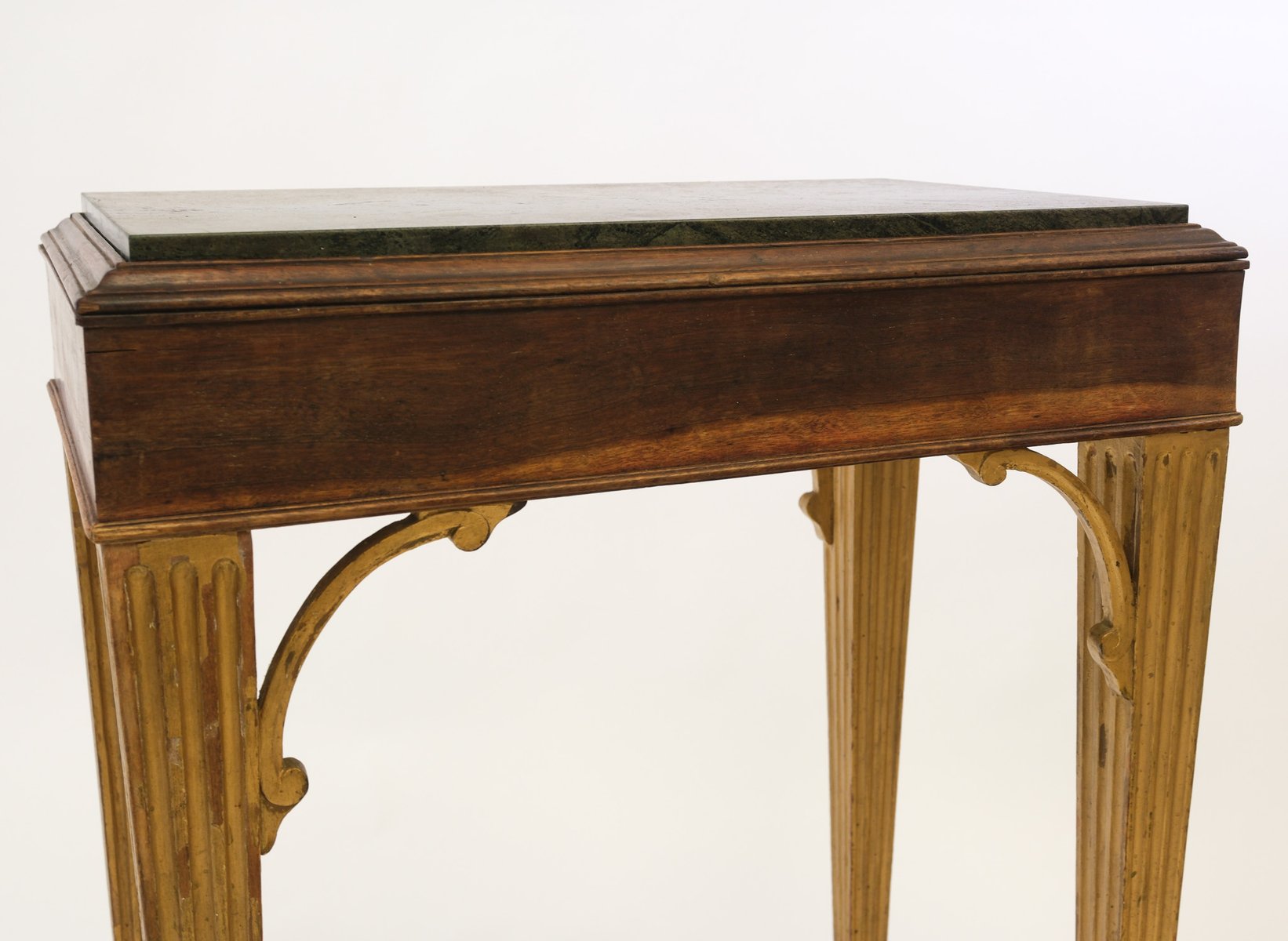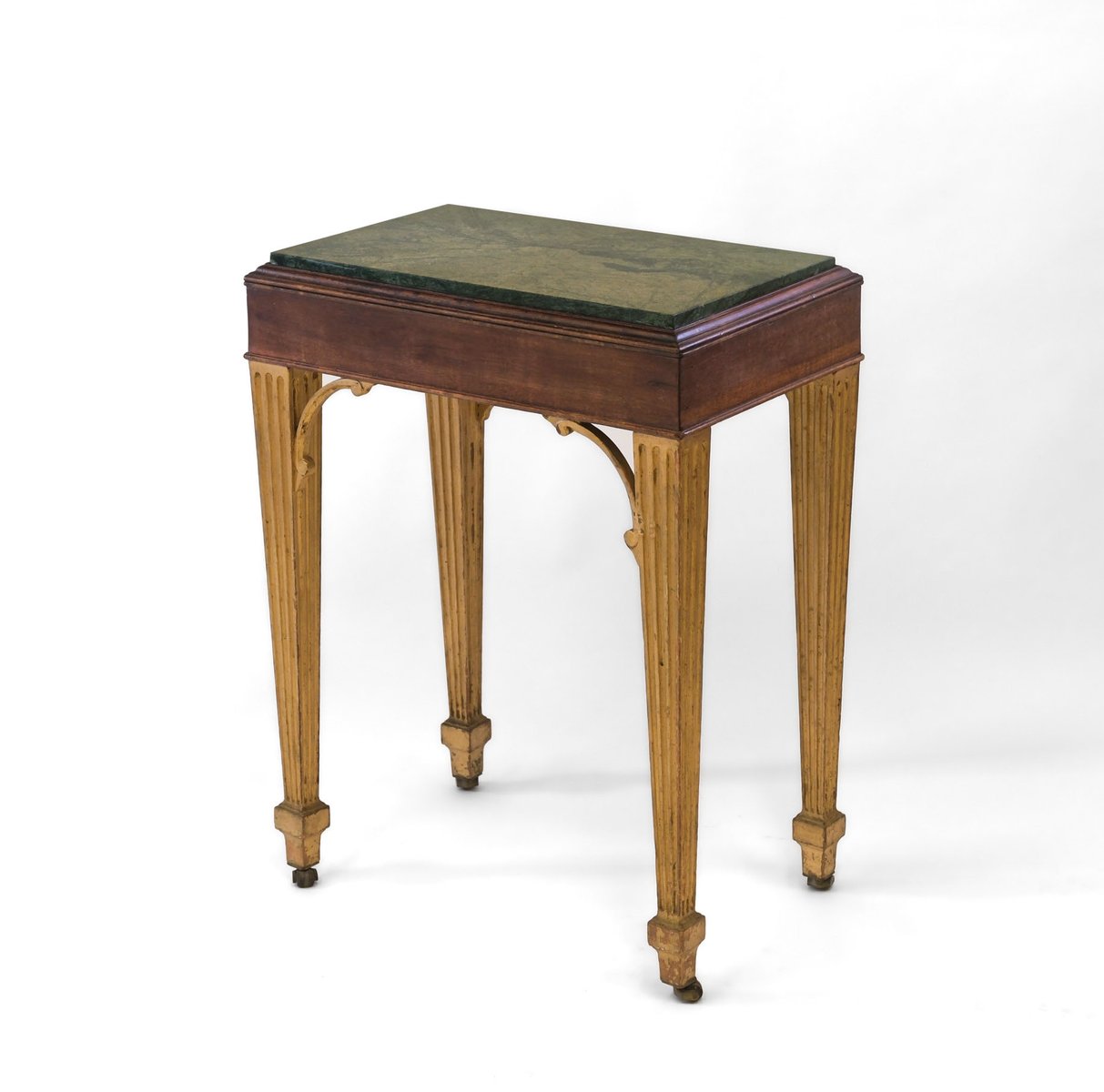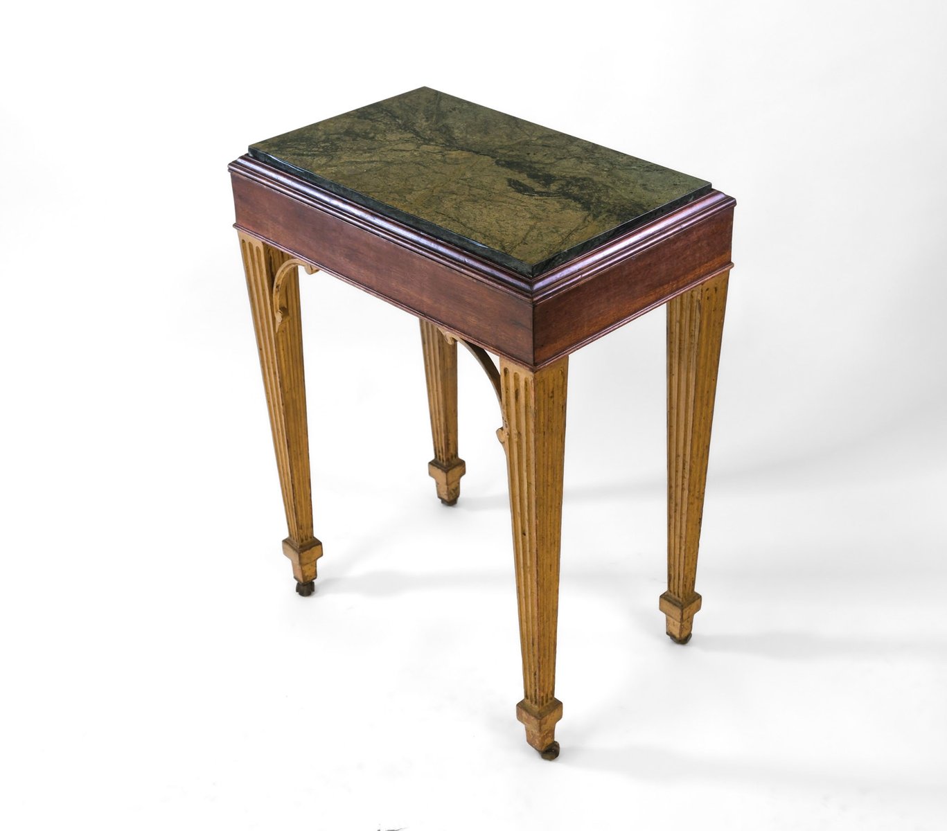 Petite Table Console Début 19ème Siècle en Marbre des Alpes Vertes, Acajou et Doré