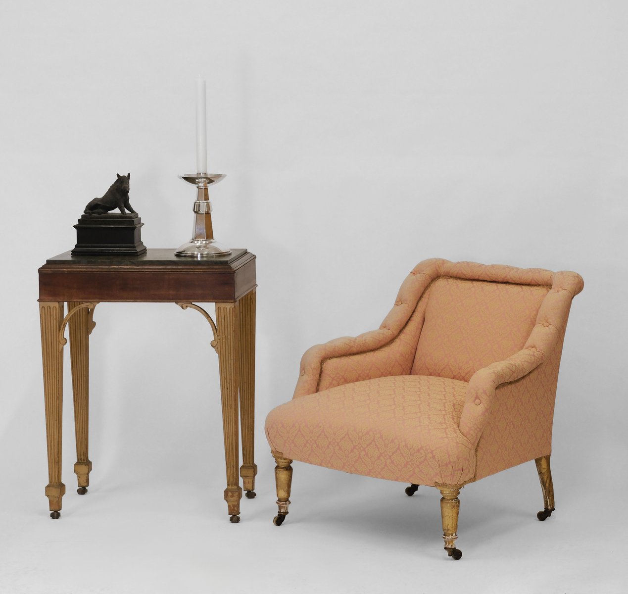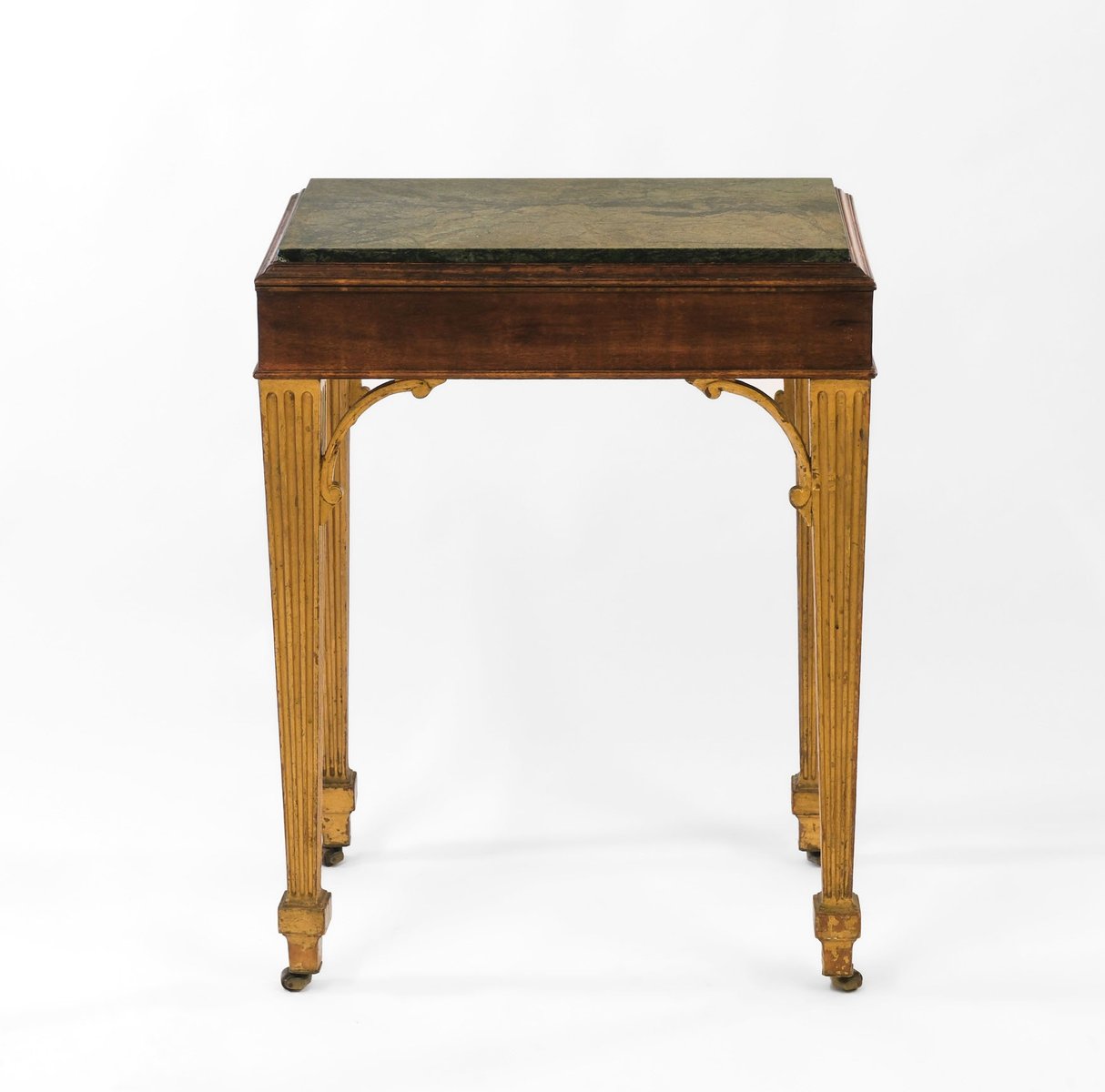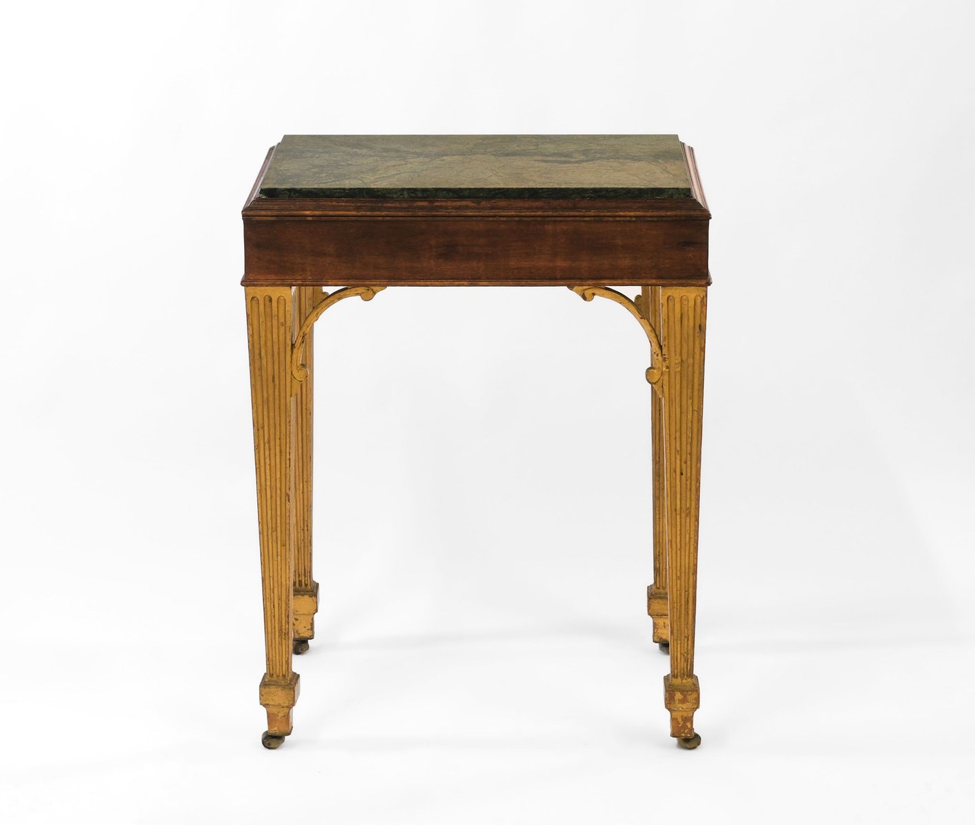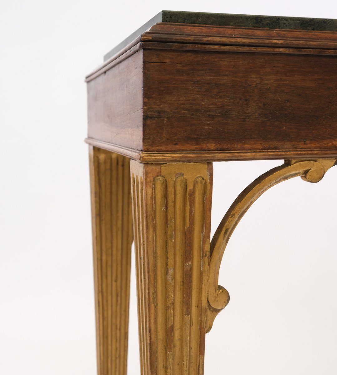 Petite Table Console Début 19ème Siècle en Marbre des Alpes Vertes, Acajou et Doré