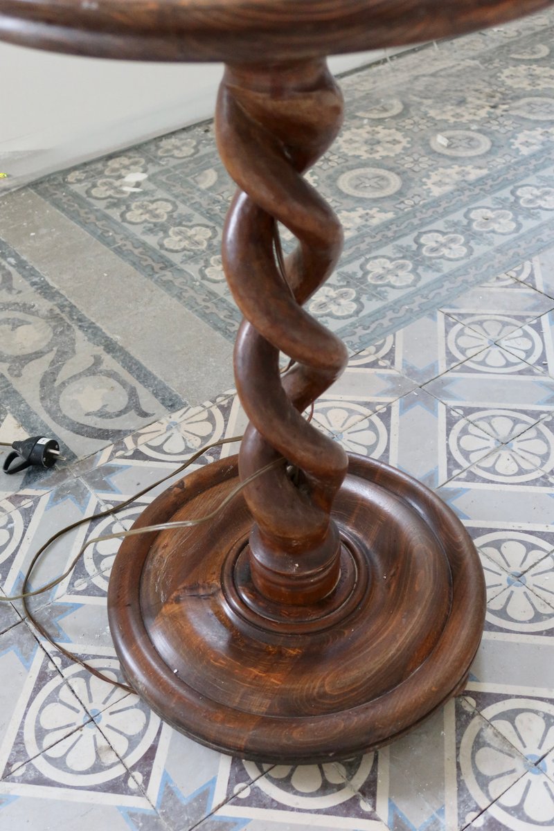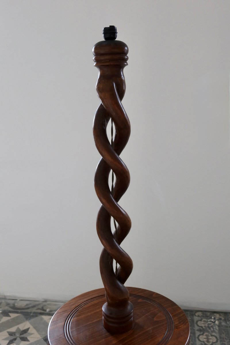 Pied de Lampe Vintage Torsadé en Bois avec Étagère, 1970s