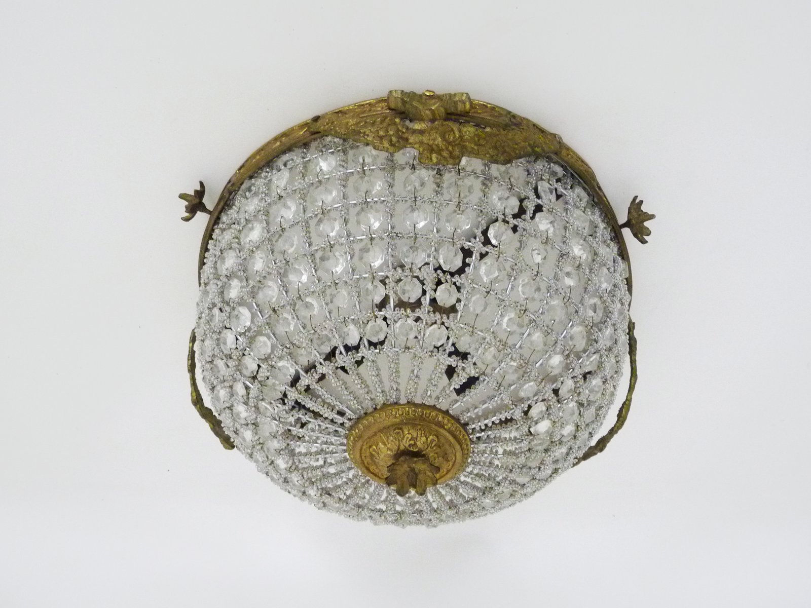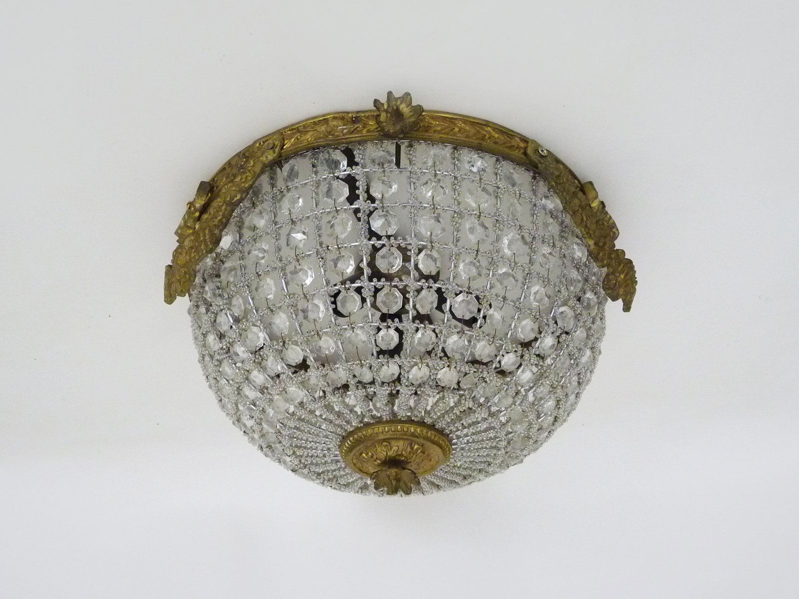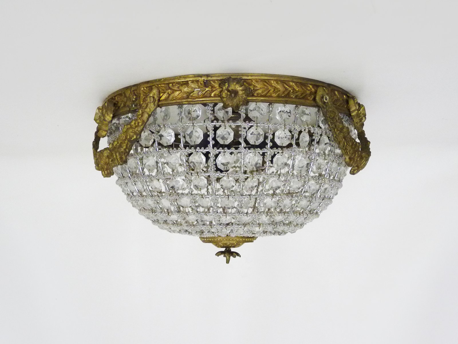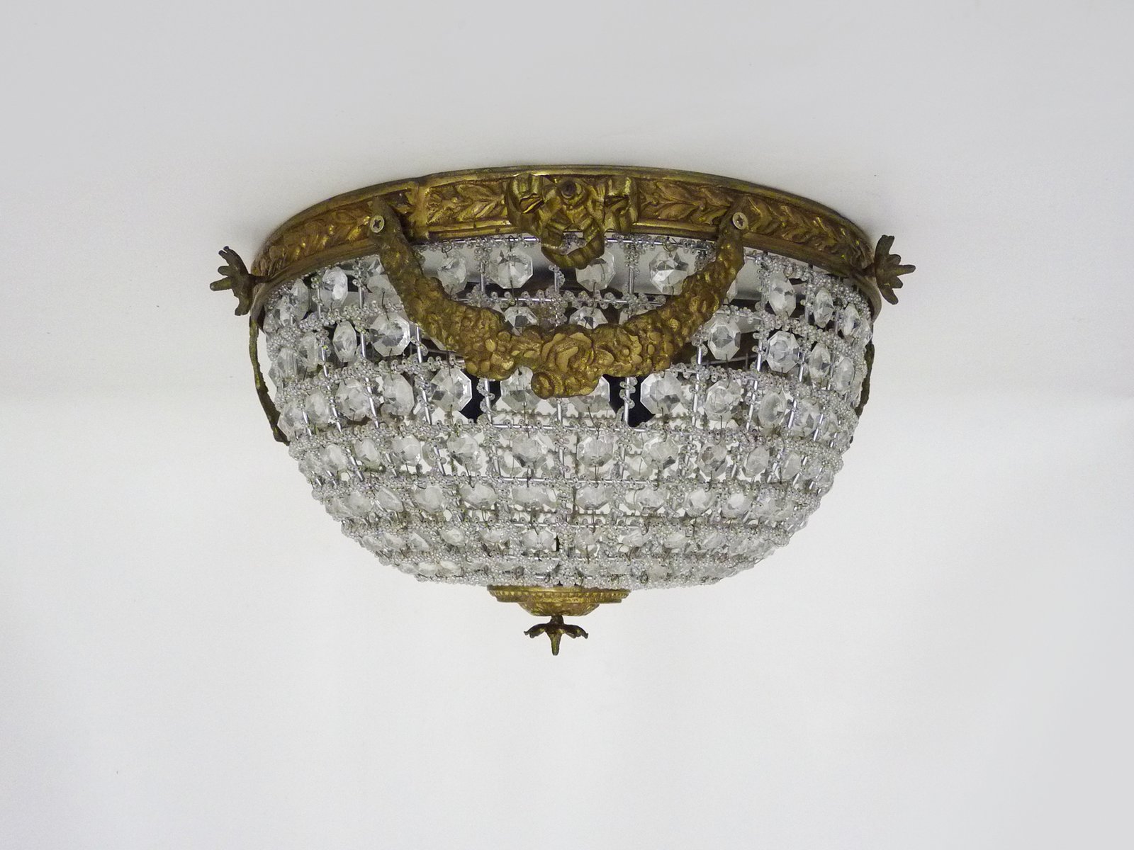 Plafonnier Style Empire en Bronze avec Suspensions en Verre, 1980s