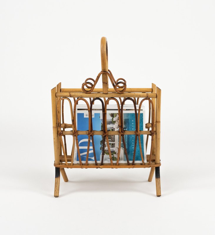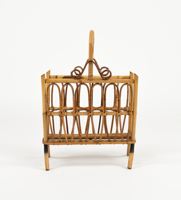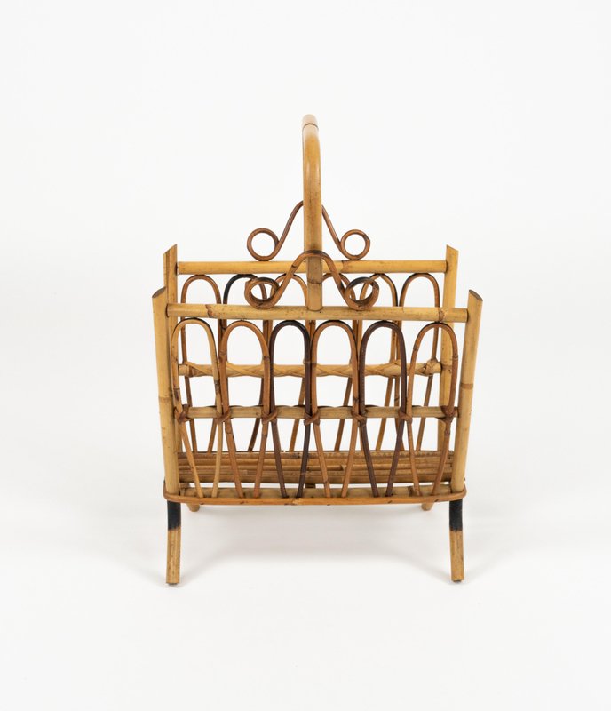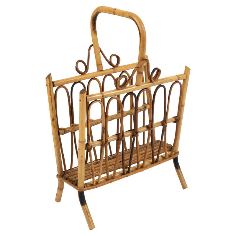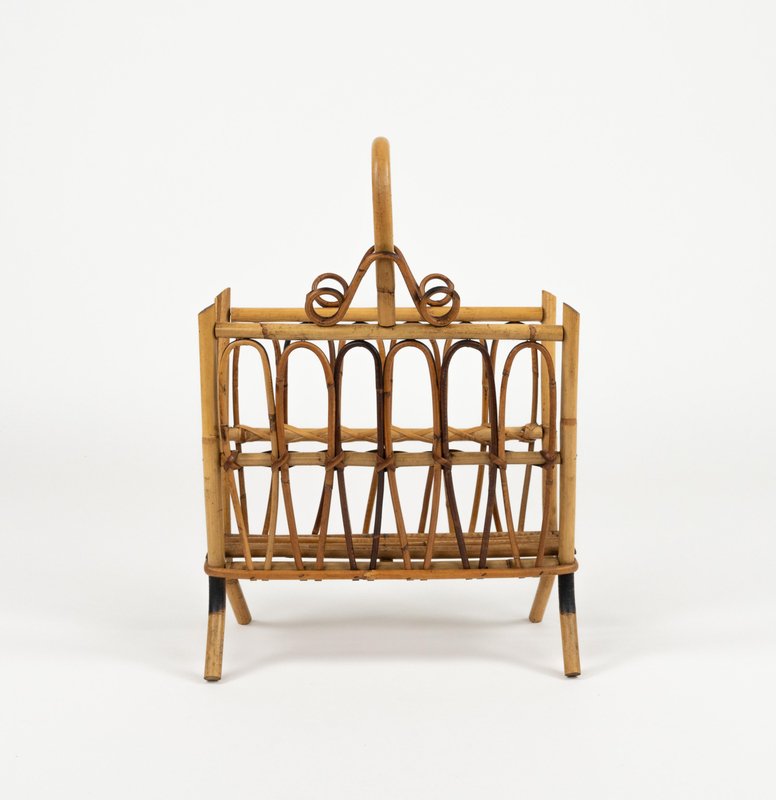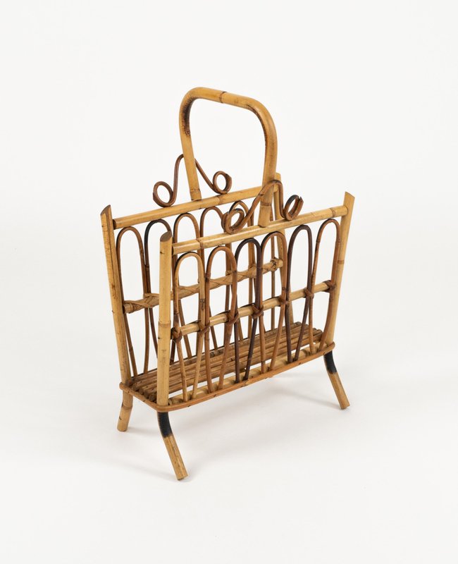 Porte-Revues Mid-Century en Rotin et Bambou, Italie, 1960s