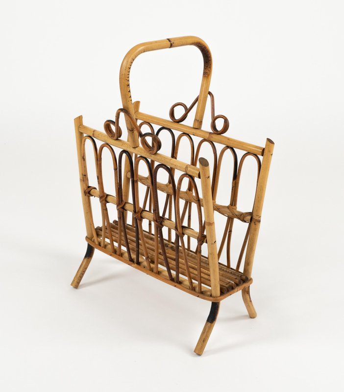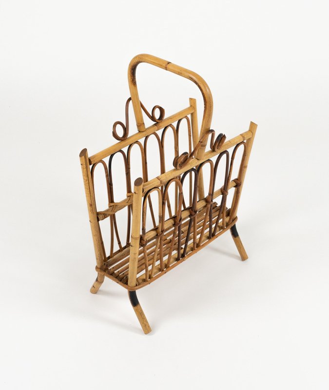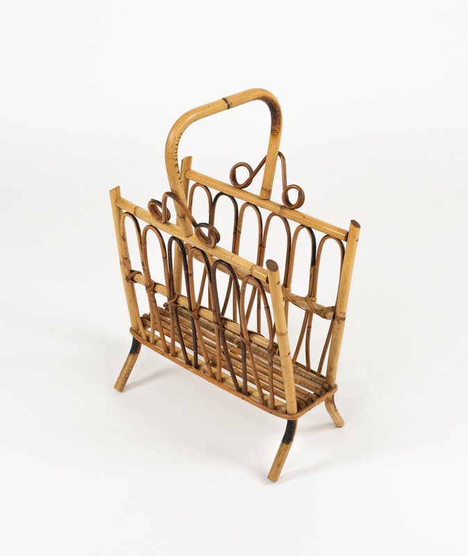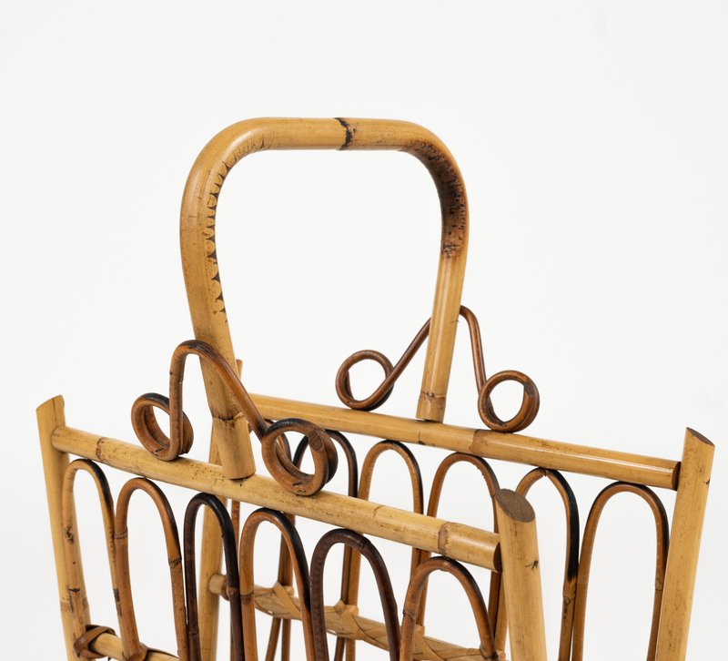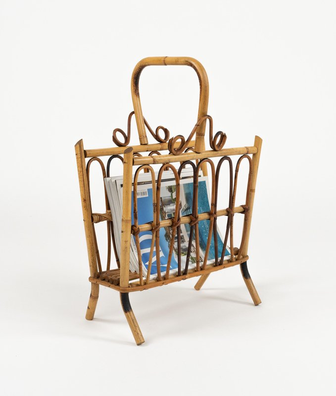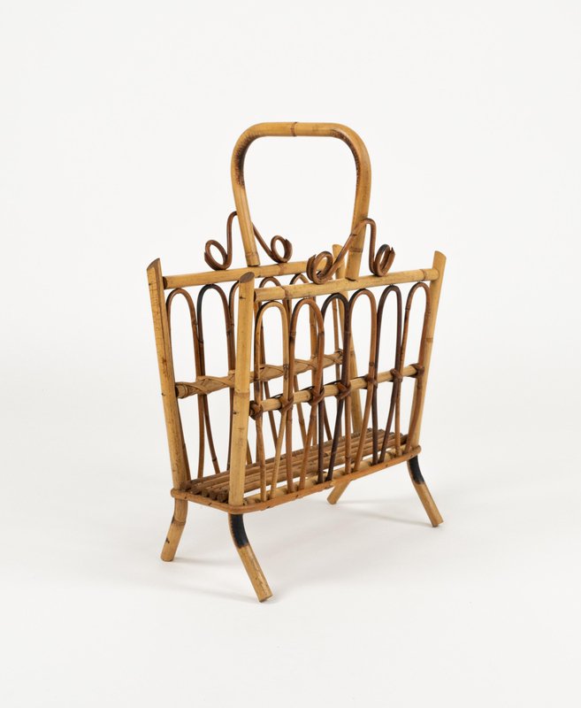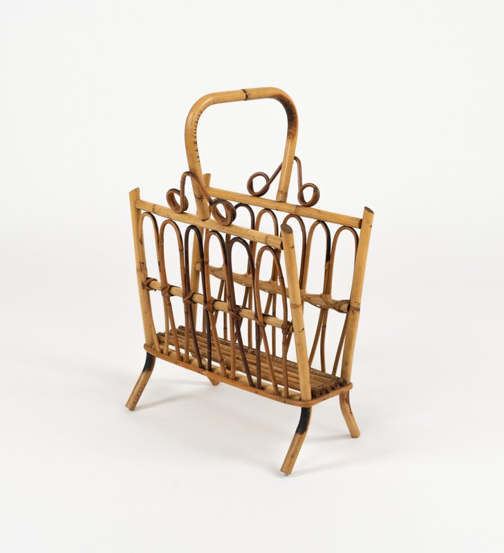 Porte-Revues Mid-Century en Rotin et Bambou, Italie, 1960s