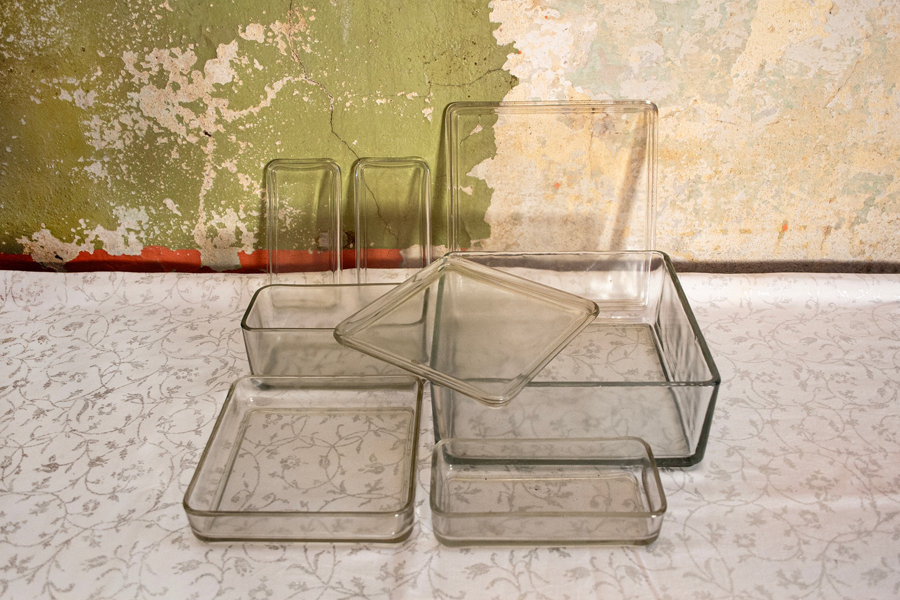 Récipients en Verre Kubus avec Couvercles par Wilhelm Wagenfeld pour Vlg, 1930s, Set de 8