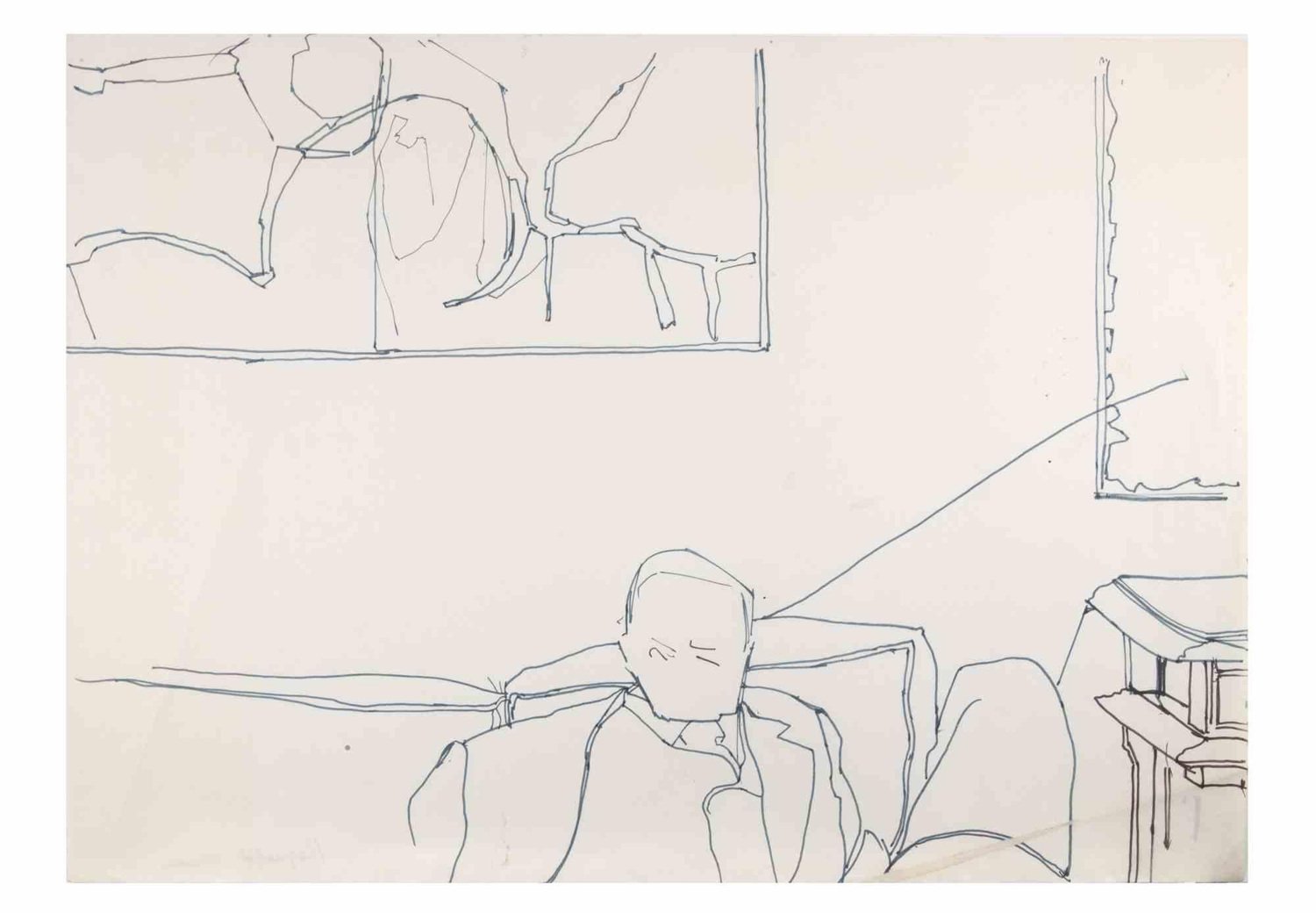 On The Sofa is a China Ink Drawing realized by Reynold Arnould (Le Havre 1919 - Parigi 1980). Good condition on a white paper. No signature. Reynold Arnould was born in Le Havre, France in 1919. He studied at l'École des Beaux-Arts de Le Havre, and won the Grand Prix de Rome in 1939. In 1949, he was the director of an art school in Dallas Texas. He exhibited at the Salon de Mai, Salon des Tuileries, and at the Salon d'Automne beginning in 1945. He is represented in several museums including Le Havre and Rouen.Arnold's early paintings are Cubist with use of deep colors. Typical subject matter included portraits and scenes of women in modern interiors. He also painted allegorical scenes, still lifes, and later, in the 1950's his work became abstract.