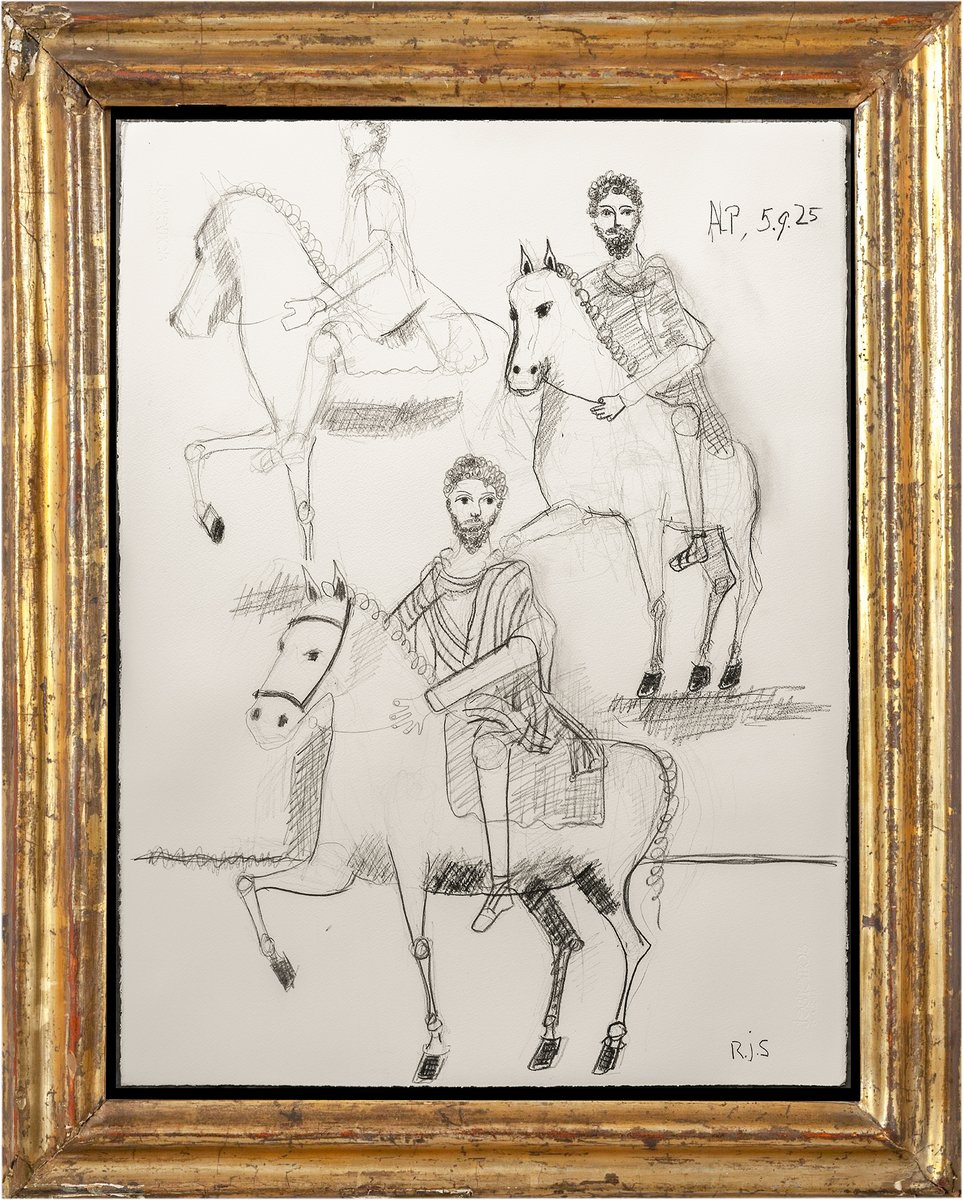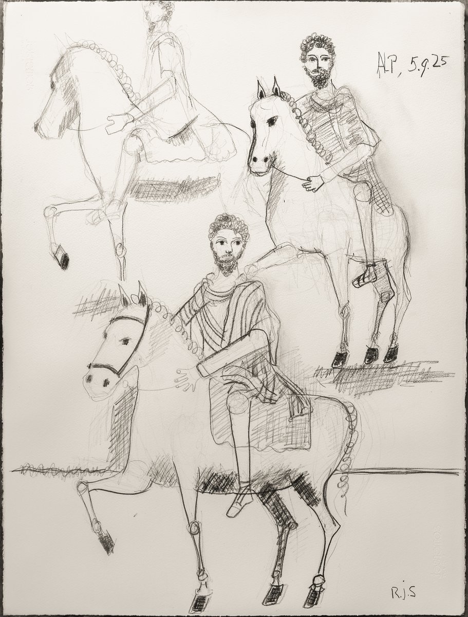 Marcus Aurelius à cheval, 2025 (5.9.25), fusain sur papier 100 % coton, 76 x 56 cm