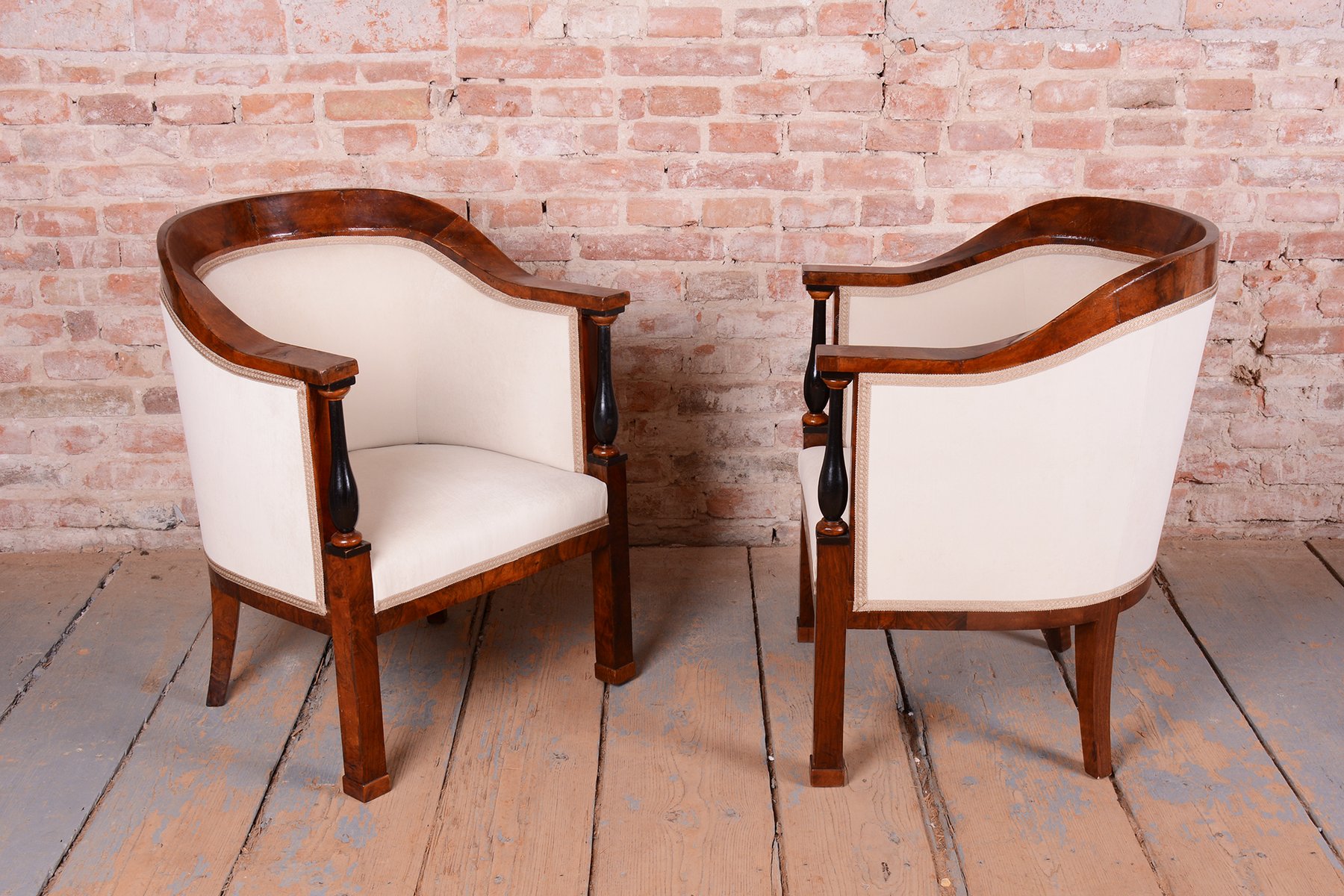 This seating suite, consisting of a sofa and a pair of armchairs, is an excellent example of Austrian furniture making from the early 19th-century Biedermeier period. This style, born from a desire for bourgeois comfort and coziness, emphasized clean lines and the natural beauty of wood. The suite represents a perfect harmony between a representative appearance and domestic intimacy, making it a timeless element suitable for both historical and eclectic interiors.