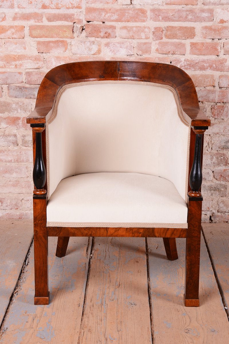 Cet ensemble de sièges, composé d'un canapé et d'une paire de fauteuils, est un excellent exemple du mobilier autrichien du début du XIXe siècle, période Biedermeier. Ce style, né d'un désir de confort et de convivialité bourgeois, mettait l'accent sur les lignes épurées et la beauté naturelle du bois. L'ensemble représente une harmonie parfaite entre une apparence représentative et une intimité domestique, ce qui en fait un élément intemporel qui convient aussi bien aux intérieurs historiques qu'éclectiques.