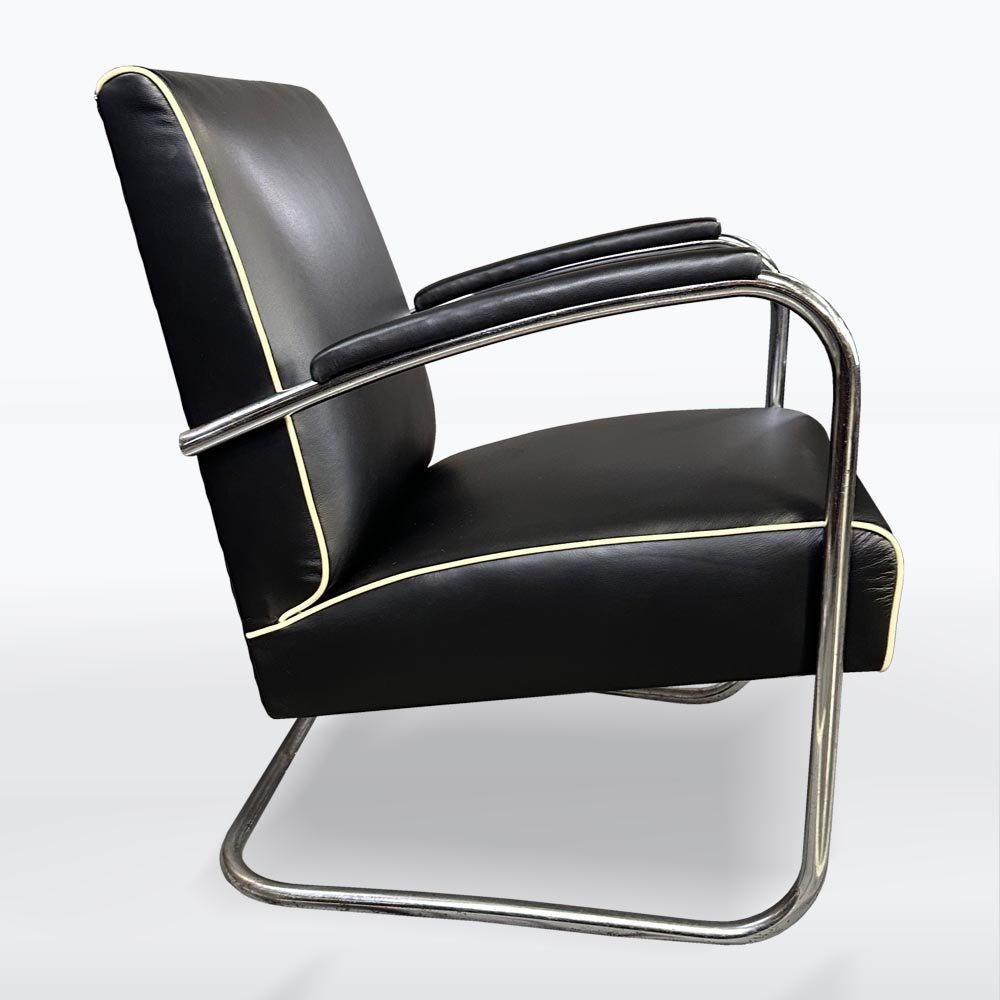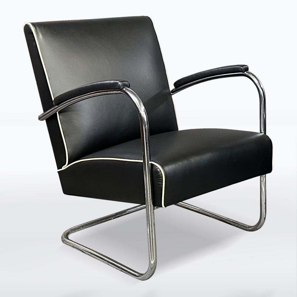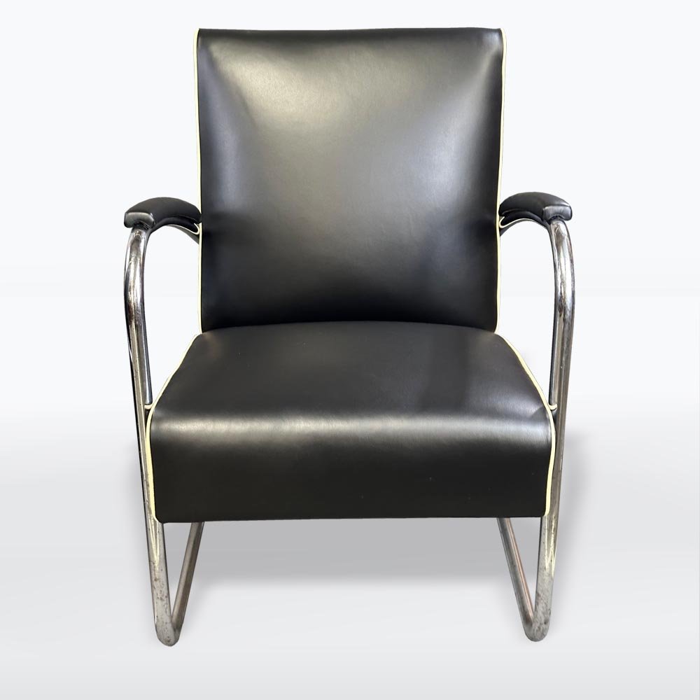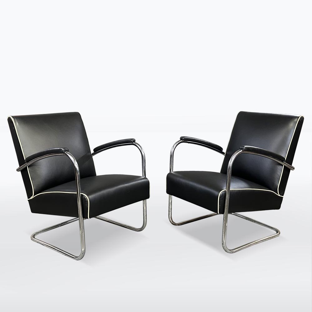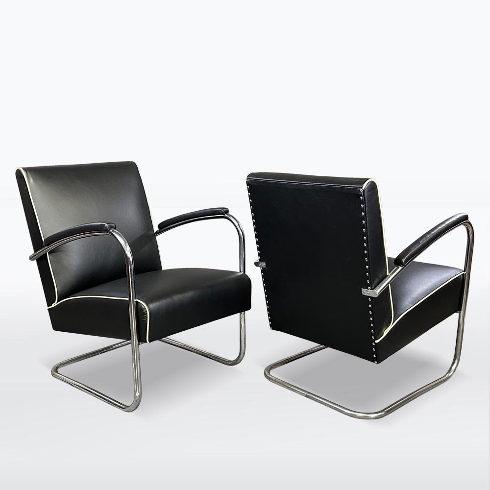 Fauteuils Bauhaus en Chrome et Cuir, 1930s, Set de 2