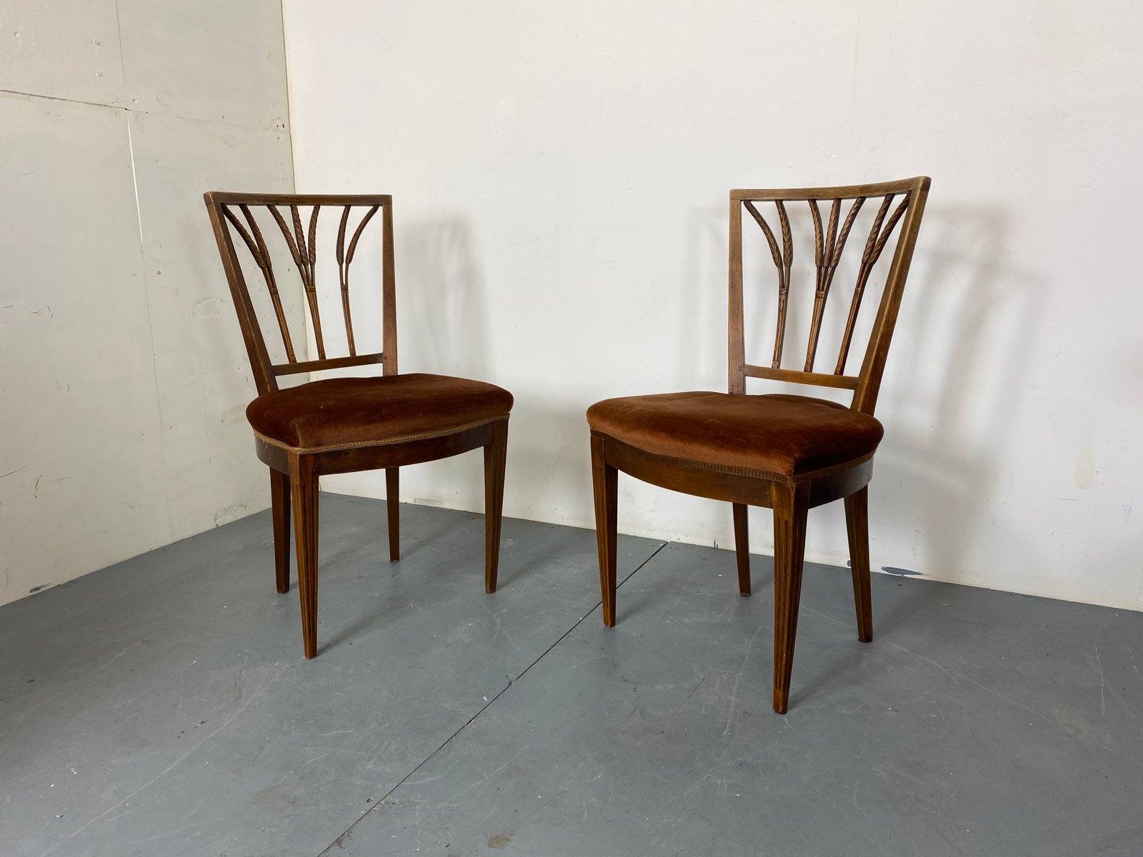 Chaises de Salle à Manger Regency Vintage en Chêne et Velours Épi de Blé, Set de 2