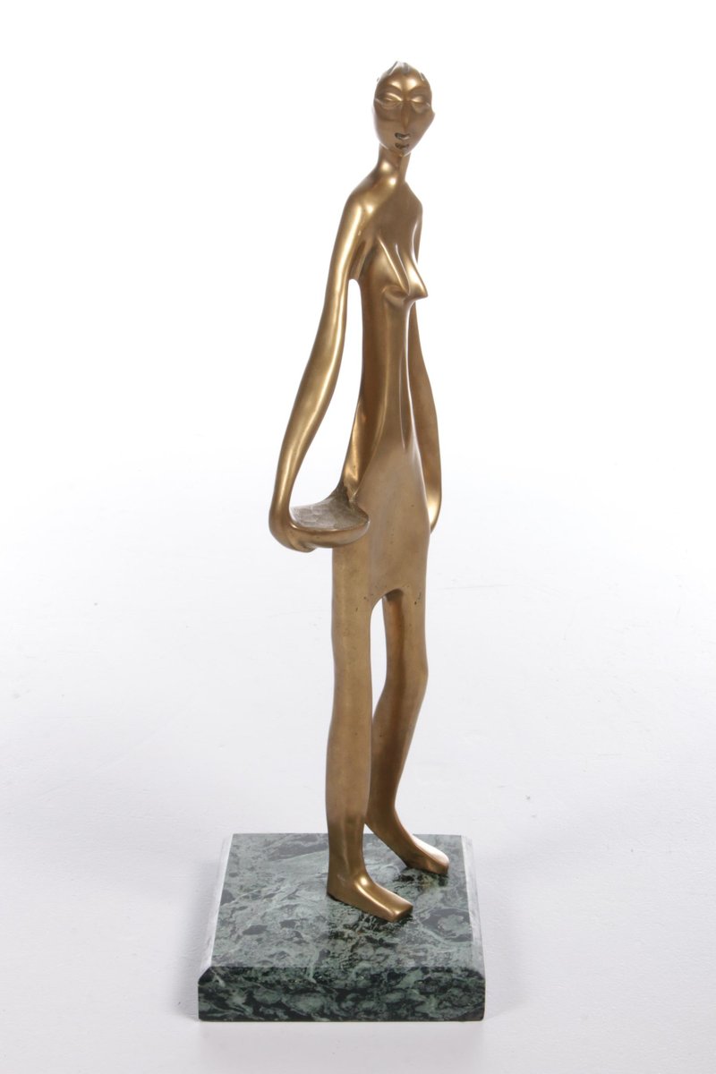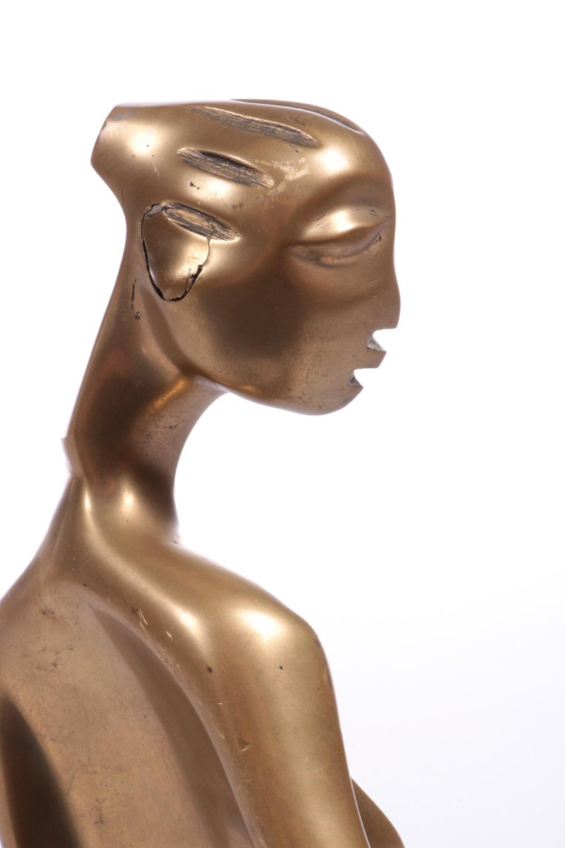 Statue de Femme Africaine Style Art Déco en Laiton sur un Socle en Marbre, 1970s