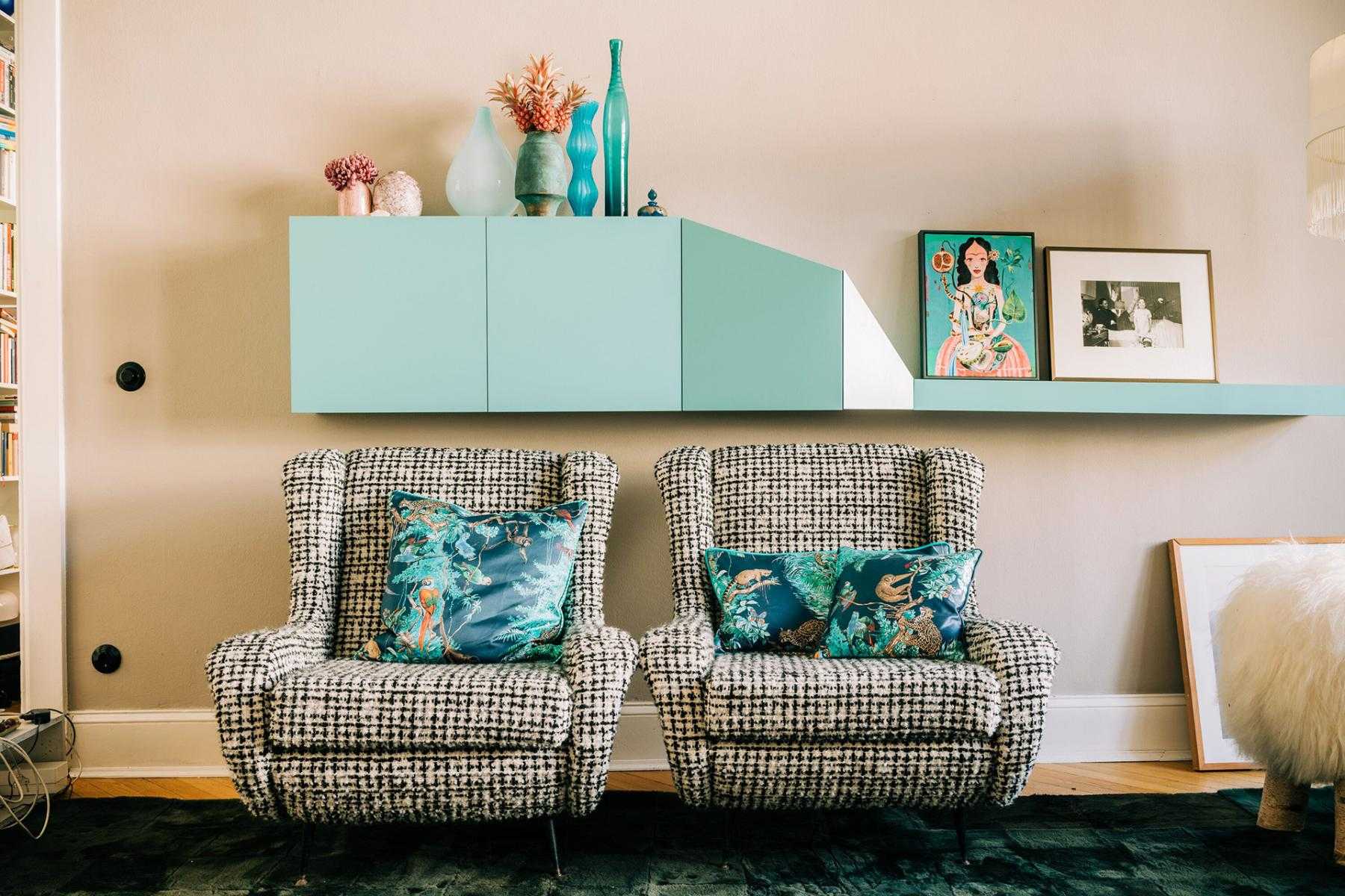 Par exemple, dans le Berlin gris, trop de turquoise peut sembler un peu fake ou kitsch. C’est pourquoi nous pouvons conseiller d'opter pour des reflets turquoise (coussins ou luminaires) plutôt que pour des meubles imposants comme un canapé. Lors de la création de la palette, nous tenons compte de toutes les œuvres d'art dont le client dispose. Bien sûr, les artistes détestent toujours que vous choisissez des rideaux assortis à leur travail [rires], mais nous ne voulons pas non plus travailler contre des couleurs fortes qui sont déjà là.