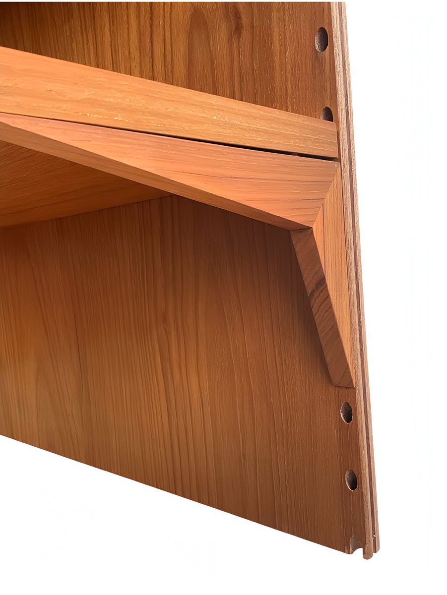 The cabinet and shelves of this CADO unit are crafted to a high standard, primarily from solid teak. The back panels are teak veneered.