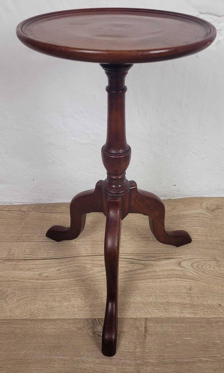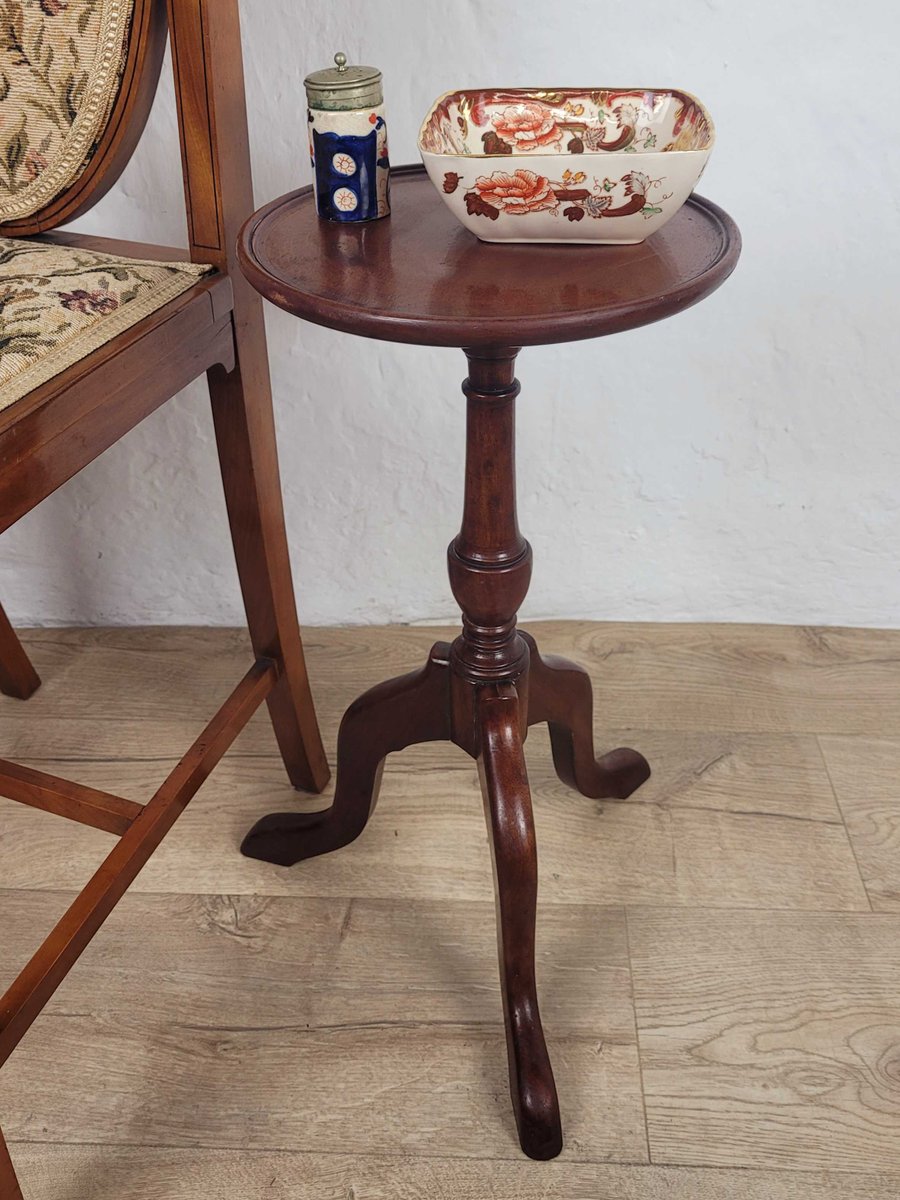 Proudly held by a tall turned leg with central vase design, that leads down to the elegantly curved sturdy tripod feet.
