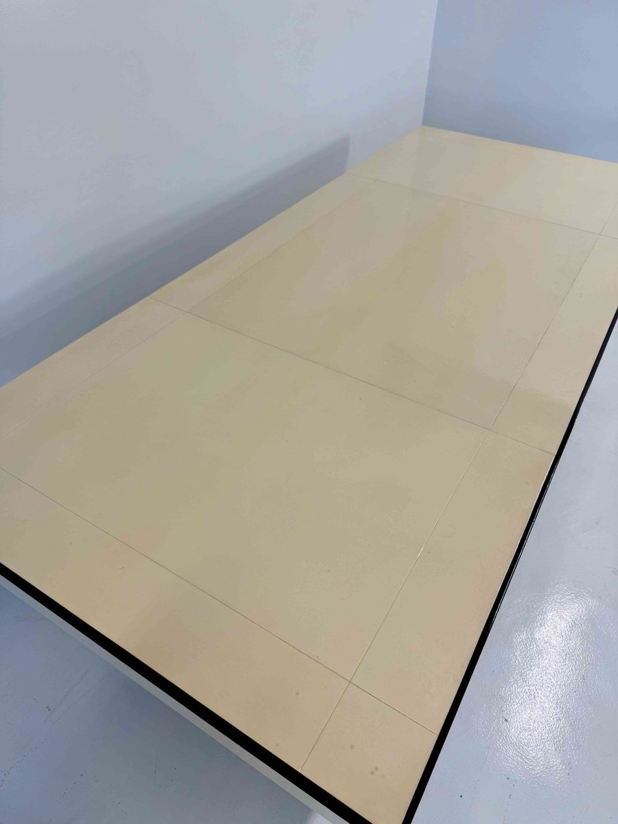 Table Art Déco en Cuir Parchemin avec Profils Noirs, Italie, 1940s