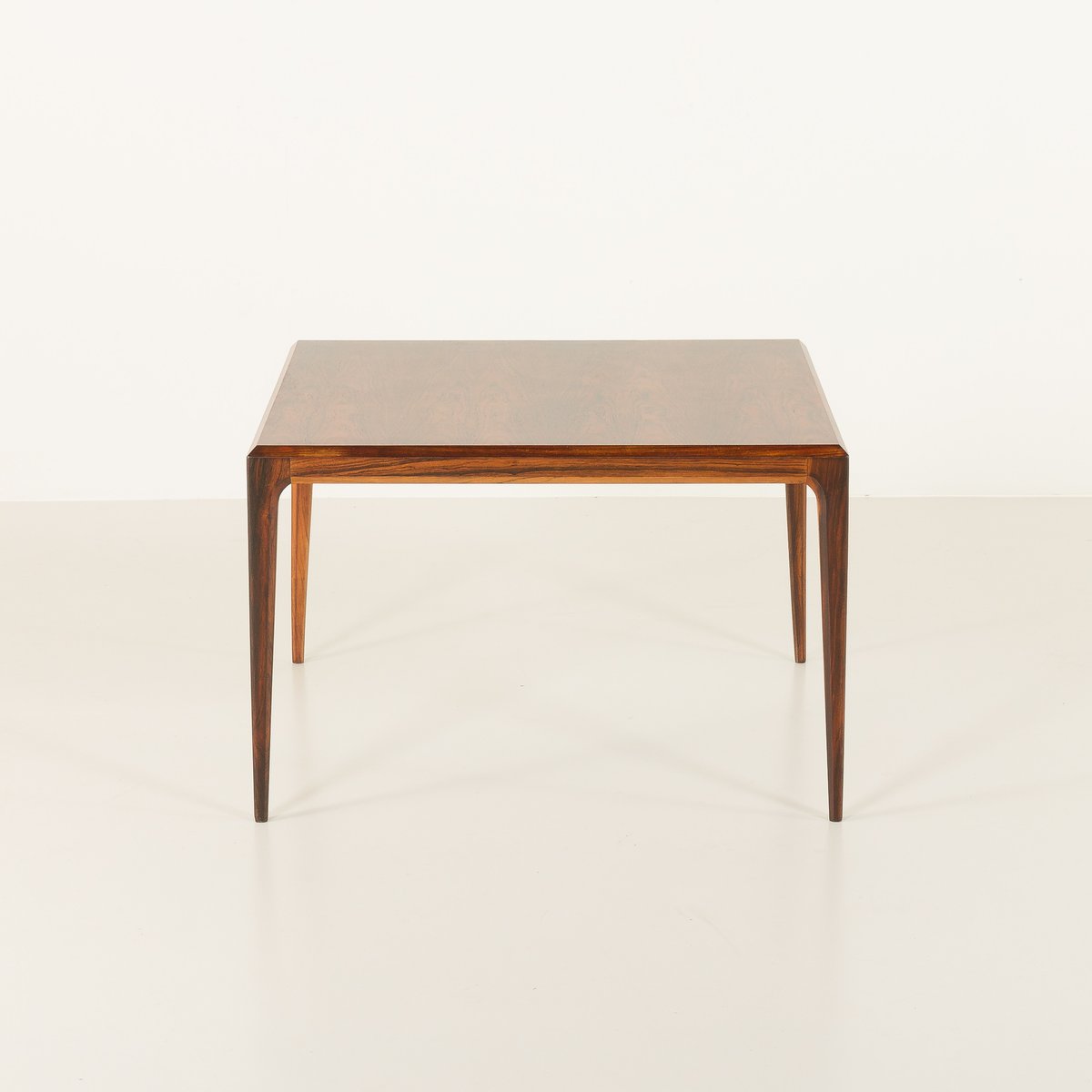 Crafted from solid rosewood, it features a rich grain, gently curved legs, and a beveled tabletop. Its rosewood structure has a warm, rich grain and a sleek, minimalist design.