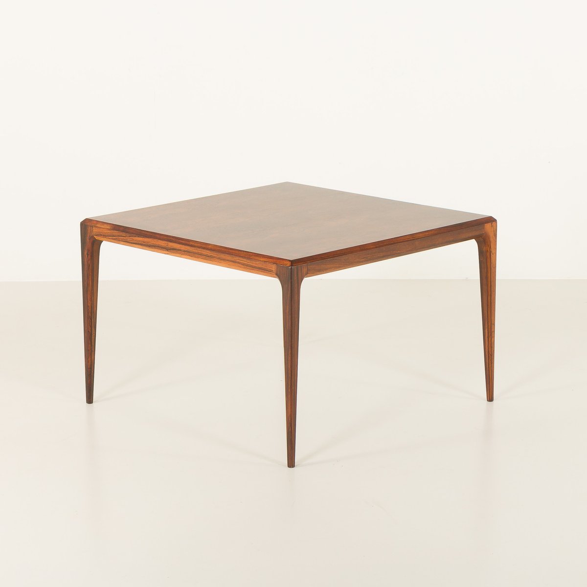 The Johannes Andersen rosewood coffee table from the 1960s is a classic example of Danish design with a simple, minimalist aesthetic. The manufacturer's label - Silkeborg - is preserved, and validates its origin. The table also has the Danish control quality mark, confirming its status as a masterpiece of Danish carpentry.