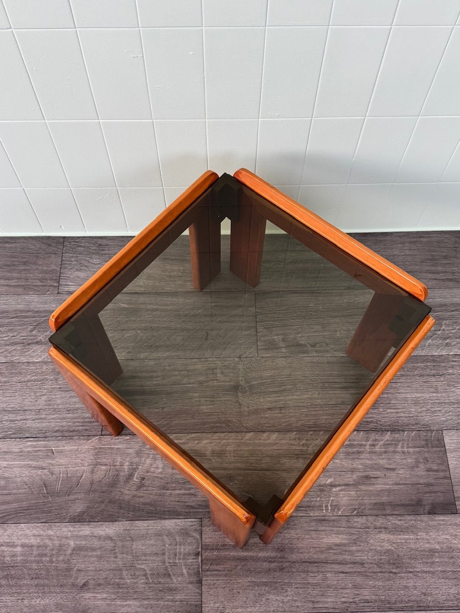 Table basse des années 1970, fabriquée en Italie et inspirée du style d'Afra et Tobia Scarpa.