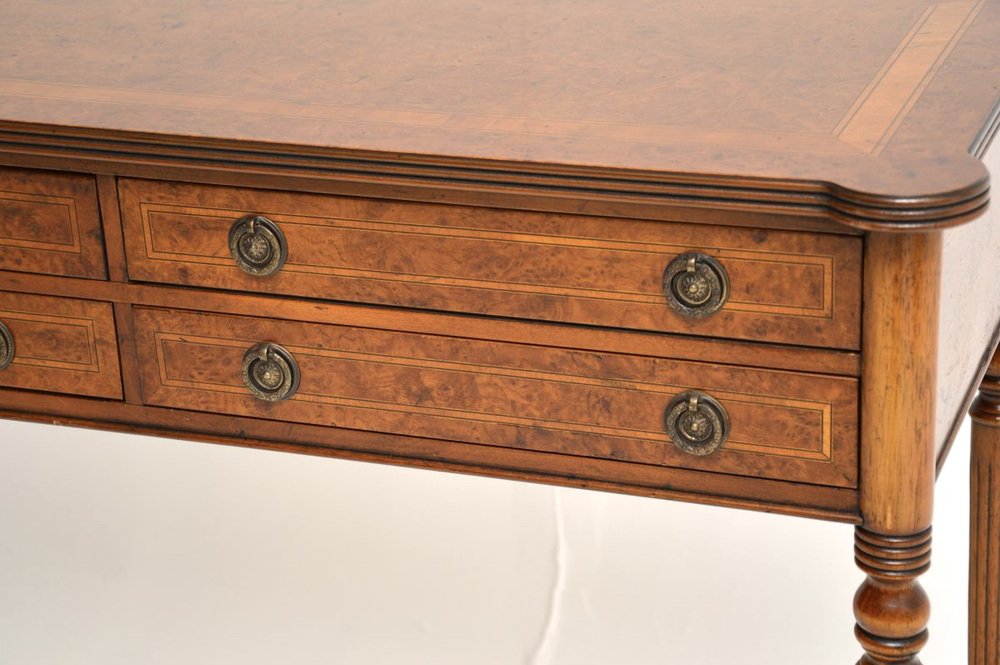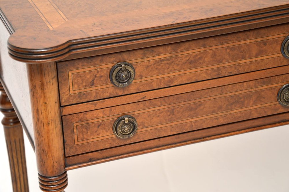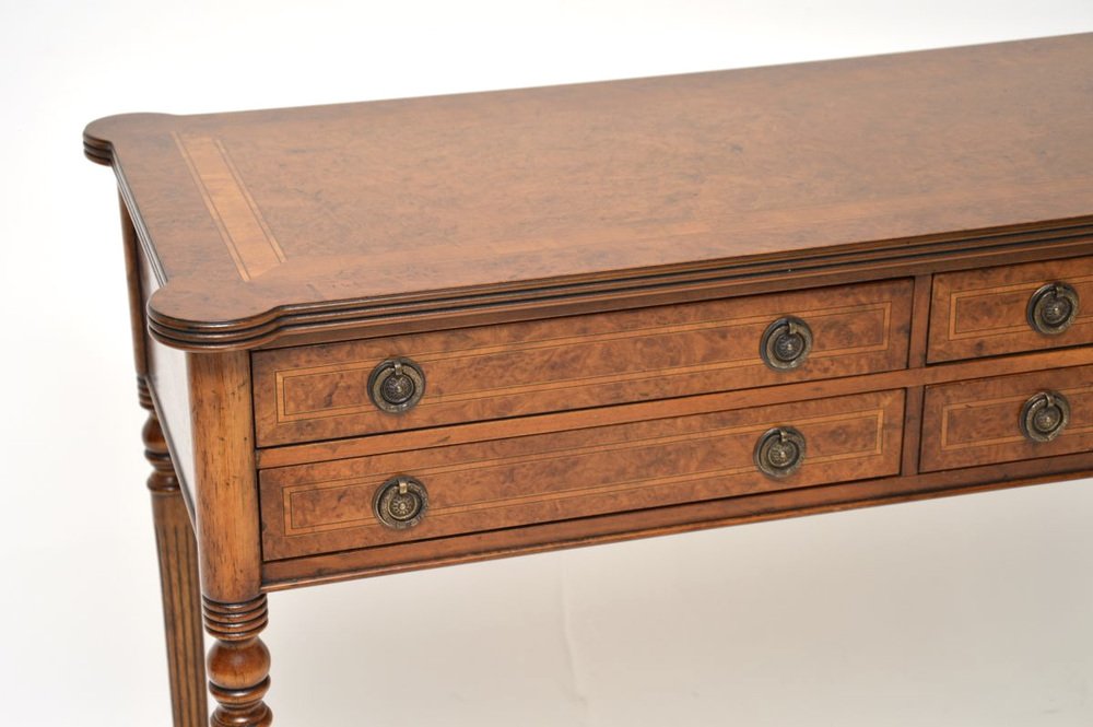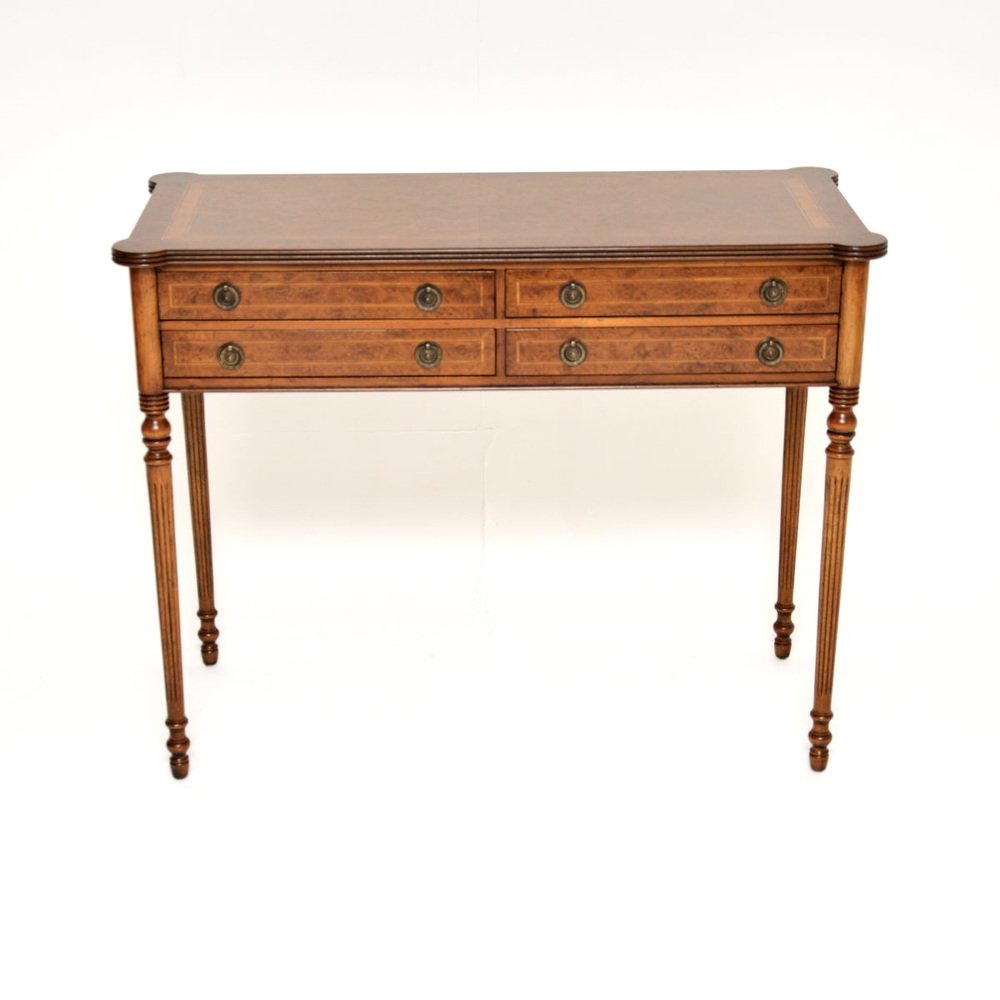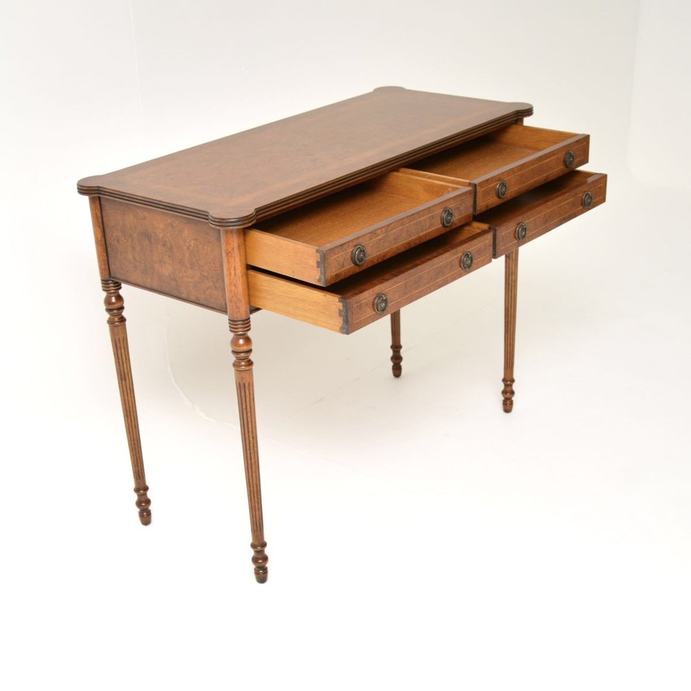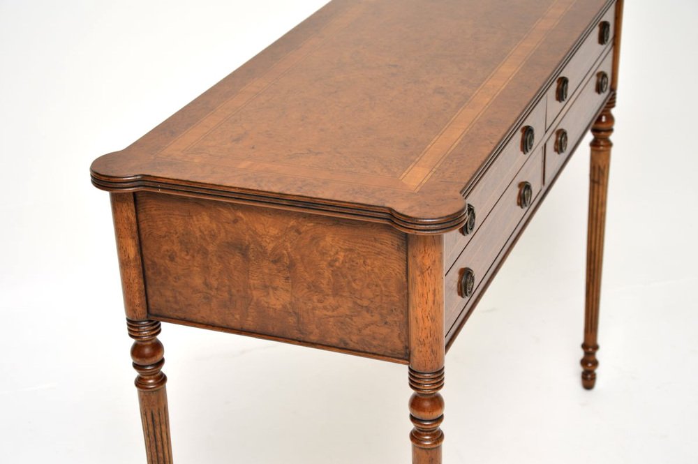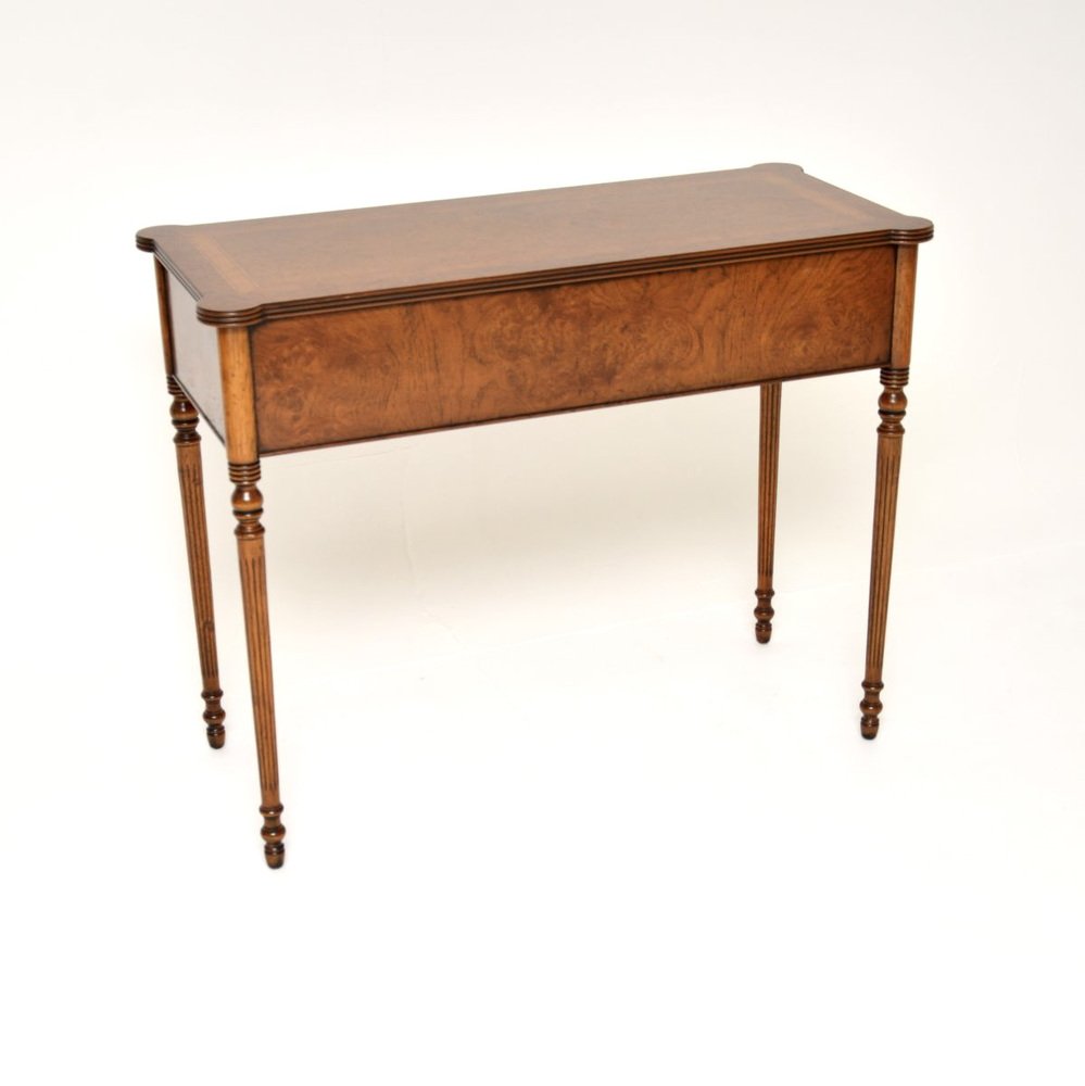 A superb antique burr walnut console / side table in the Georgian style. This was made in England, it dates from around the 1950’s.