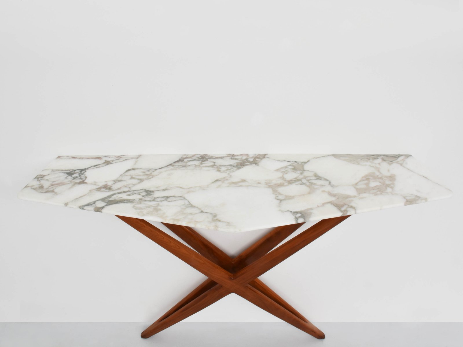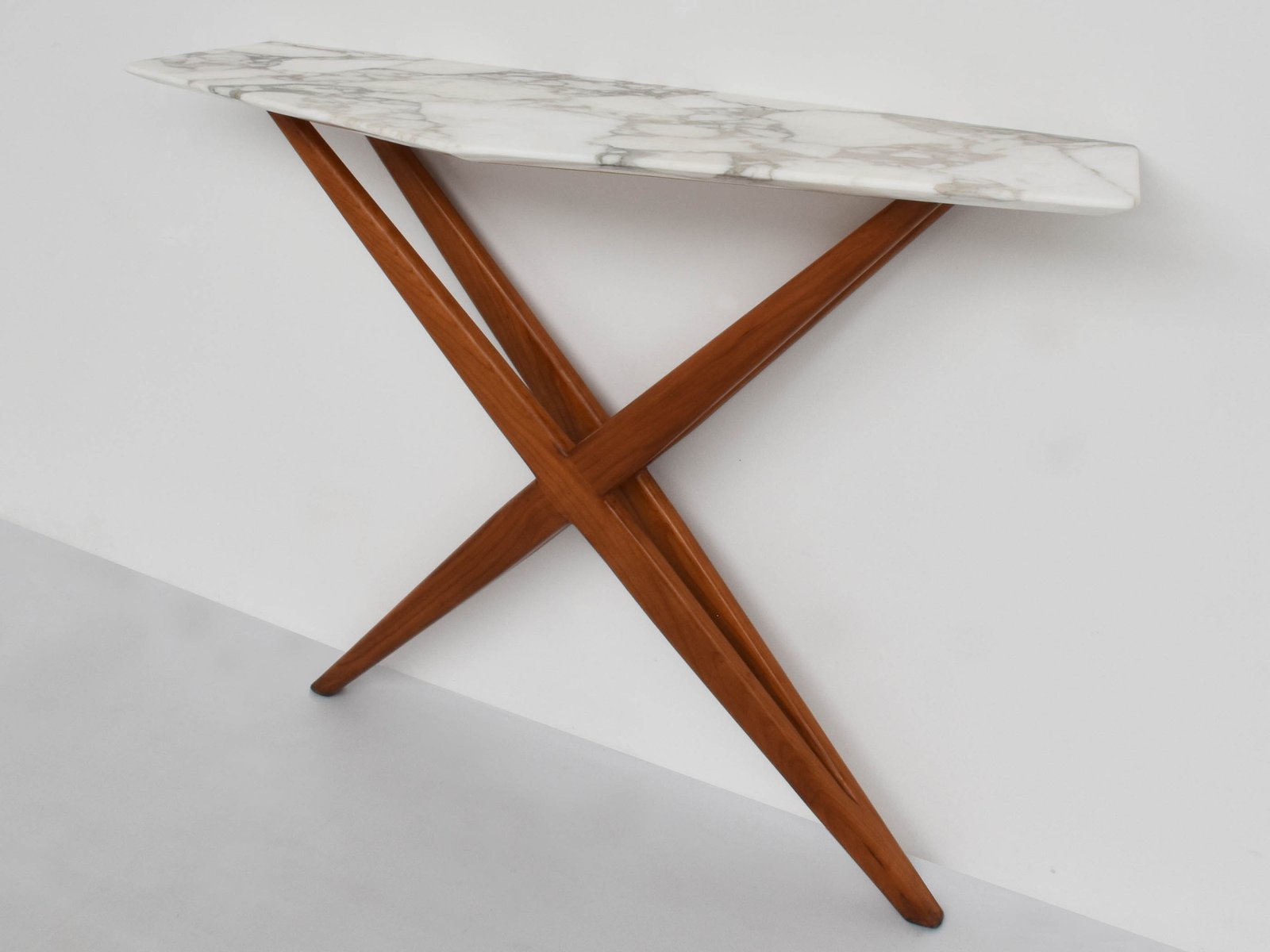 Table Console en Bois Fruitier et Marbre par Studio BBPR Milano, 1958