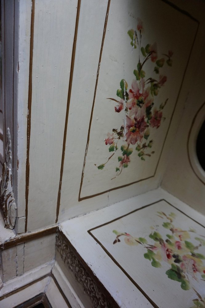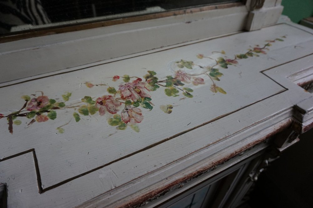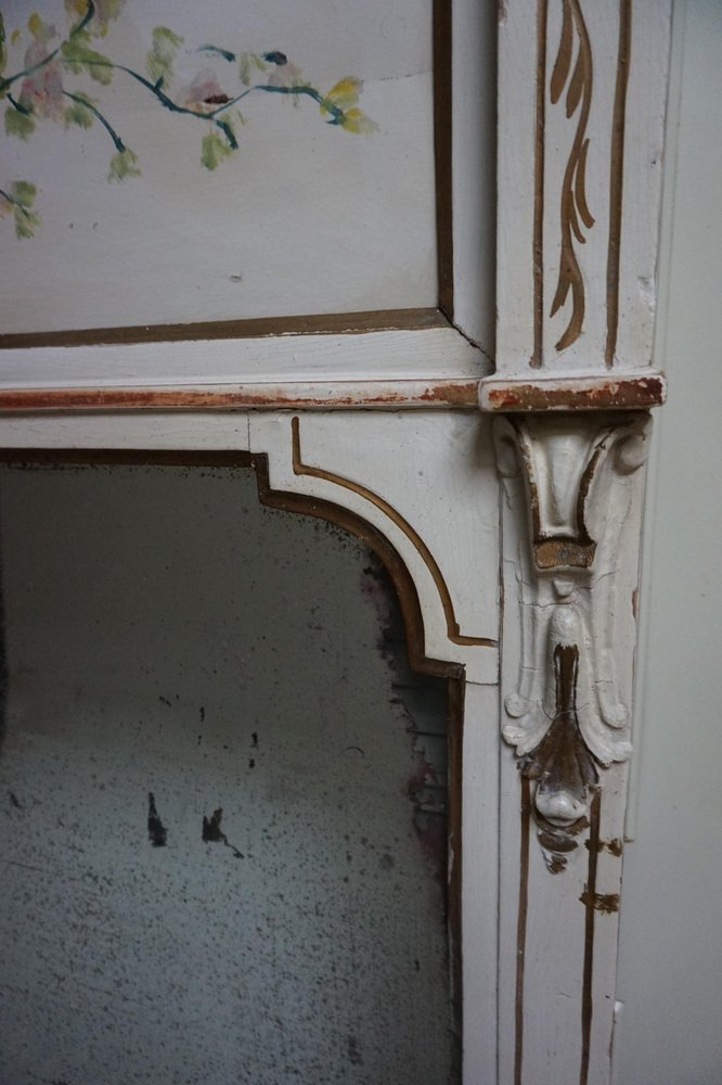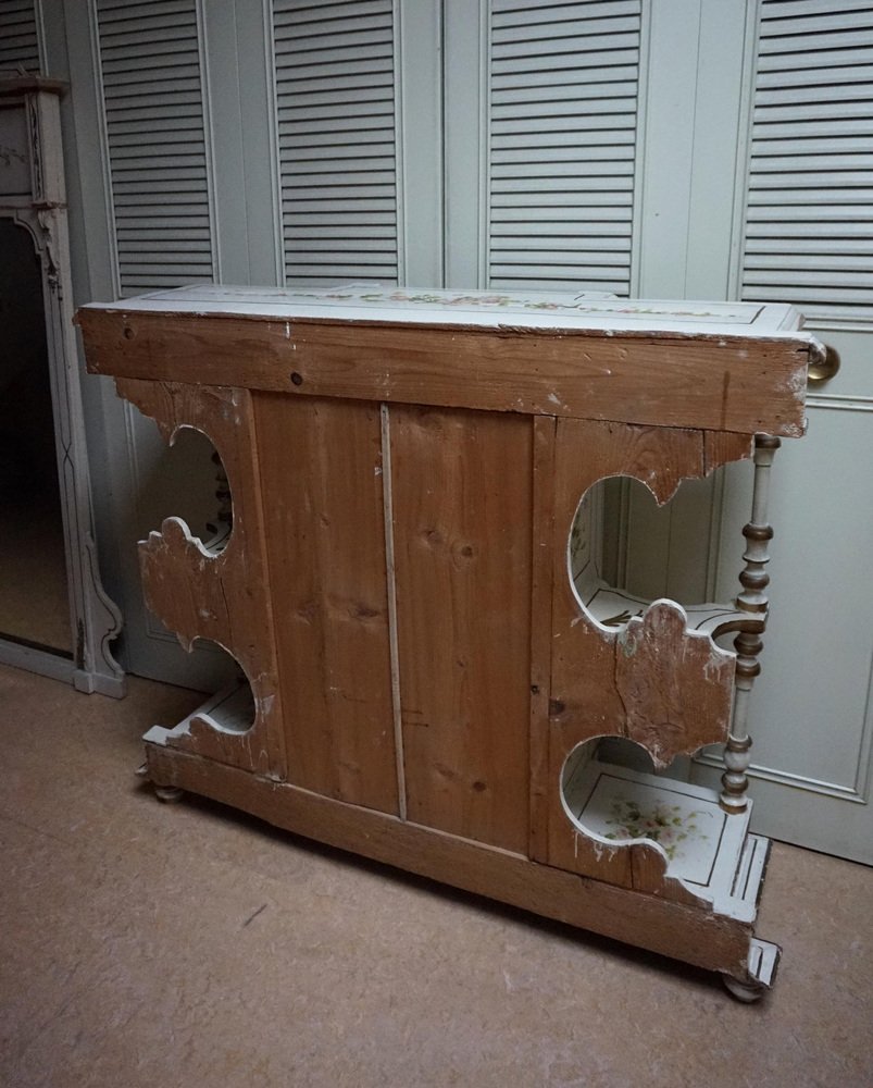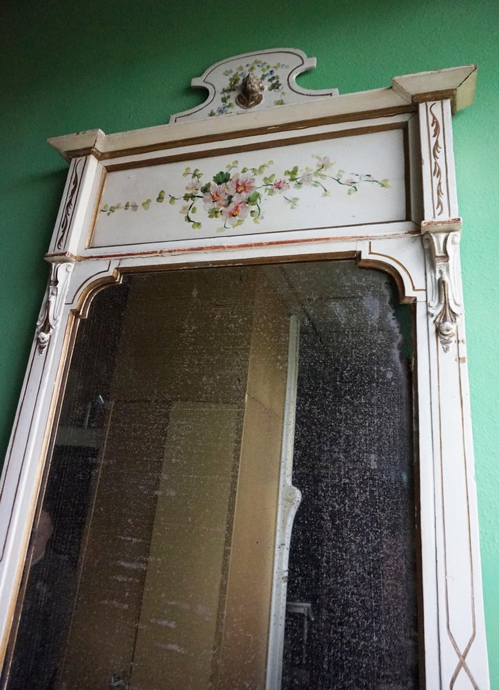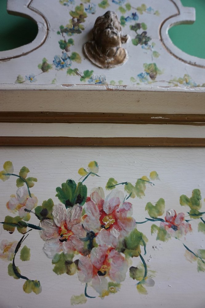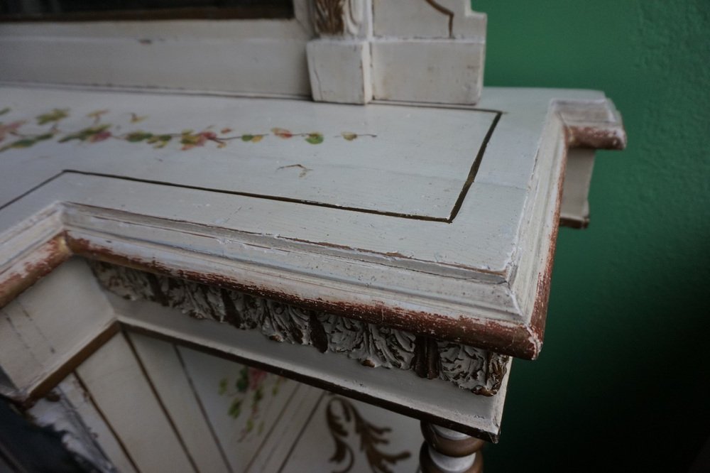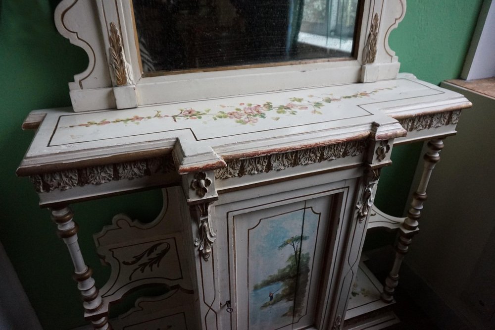 Table Console Peinte à la Main avec Miroir et Peinture Florale, France, 1900s